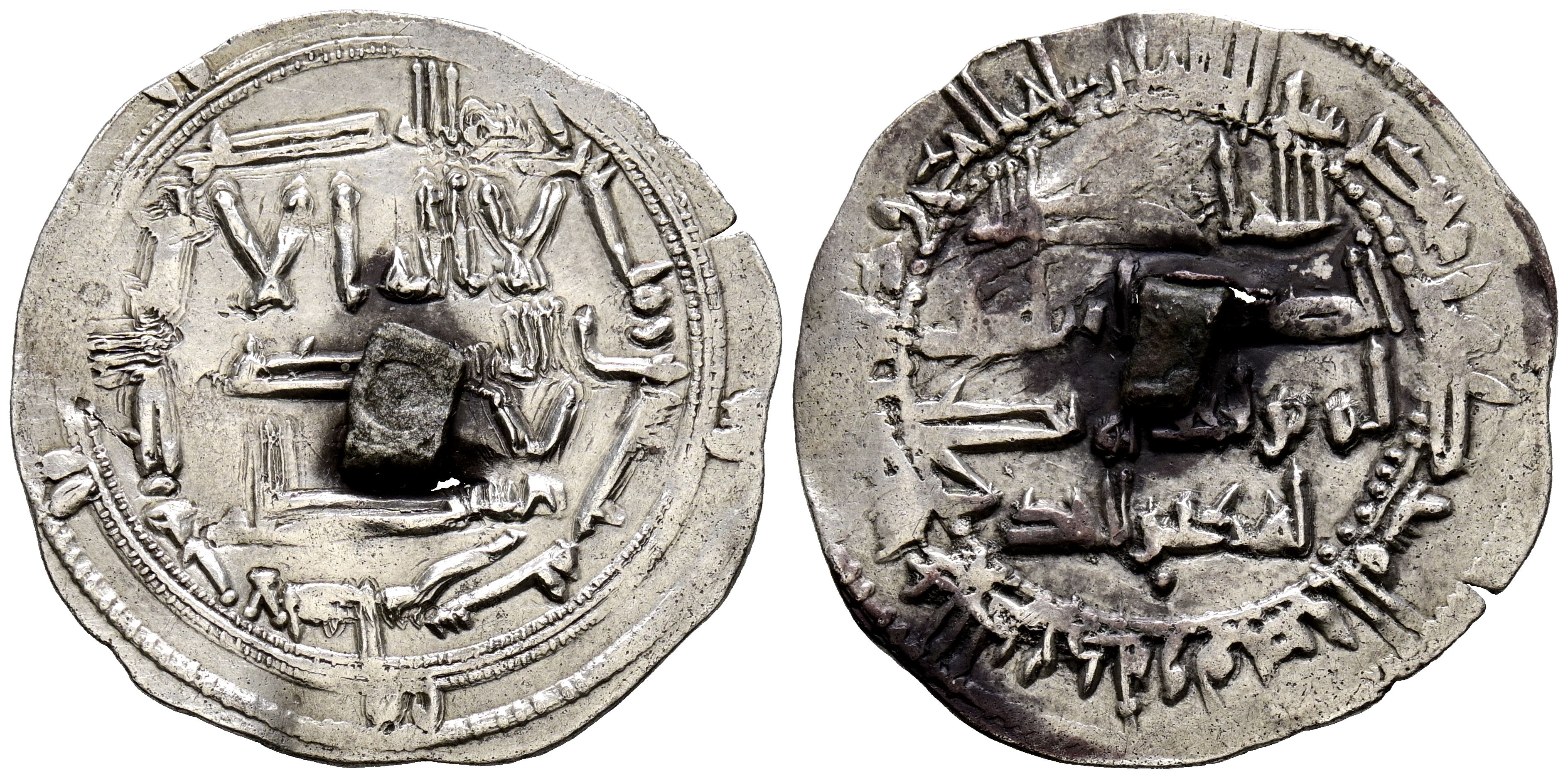 DEPENDENT EMIRATE OF CÓRDOBA, Muhammad I. (Ar. 2.69g/27mm). 260H. al-Ándalus / الاندلس. (Vives 281). VF+. Staple / added weight. Attractive and unique specimen.