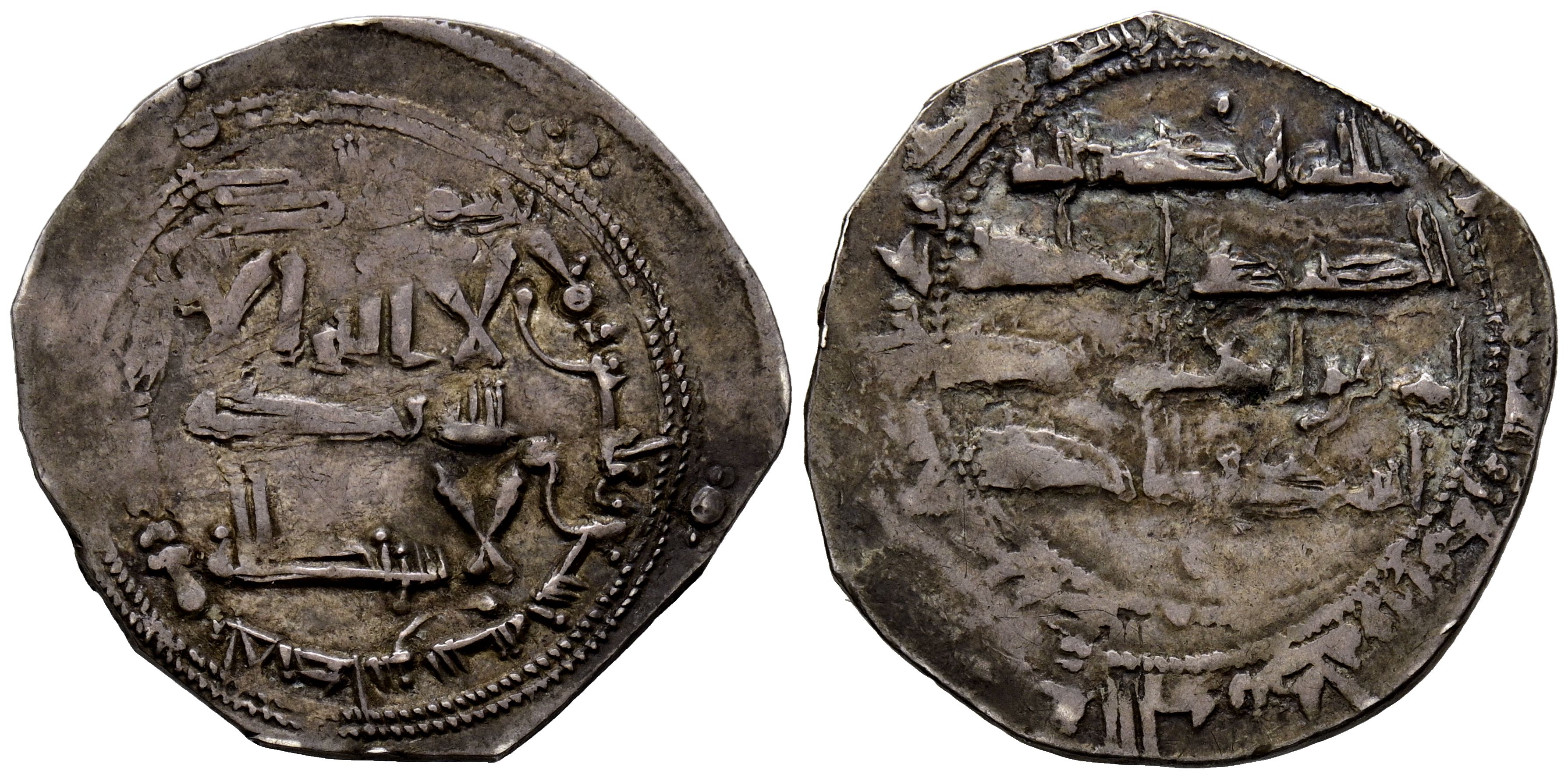 DEPENDENT EMIRATE OF CÓRDOBA. Muhammad I. Dirham. (Ar. 2.09g/25mm). 239H. al-Andalus / الاندلس. (Vives 226; Frochoso 239.10). Very Fine-.