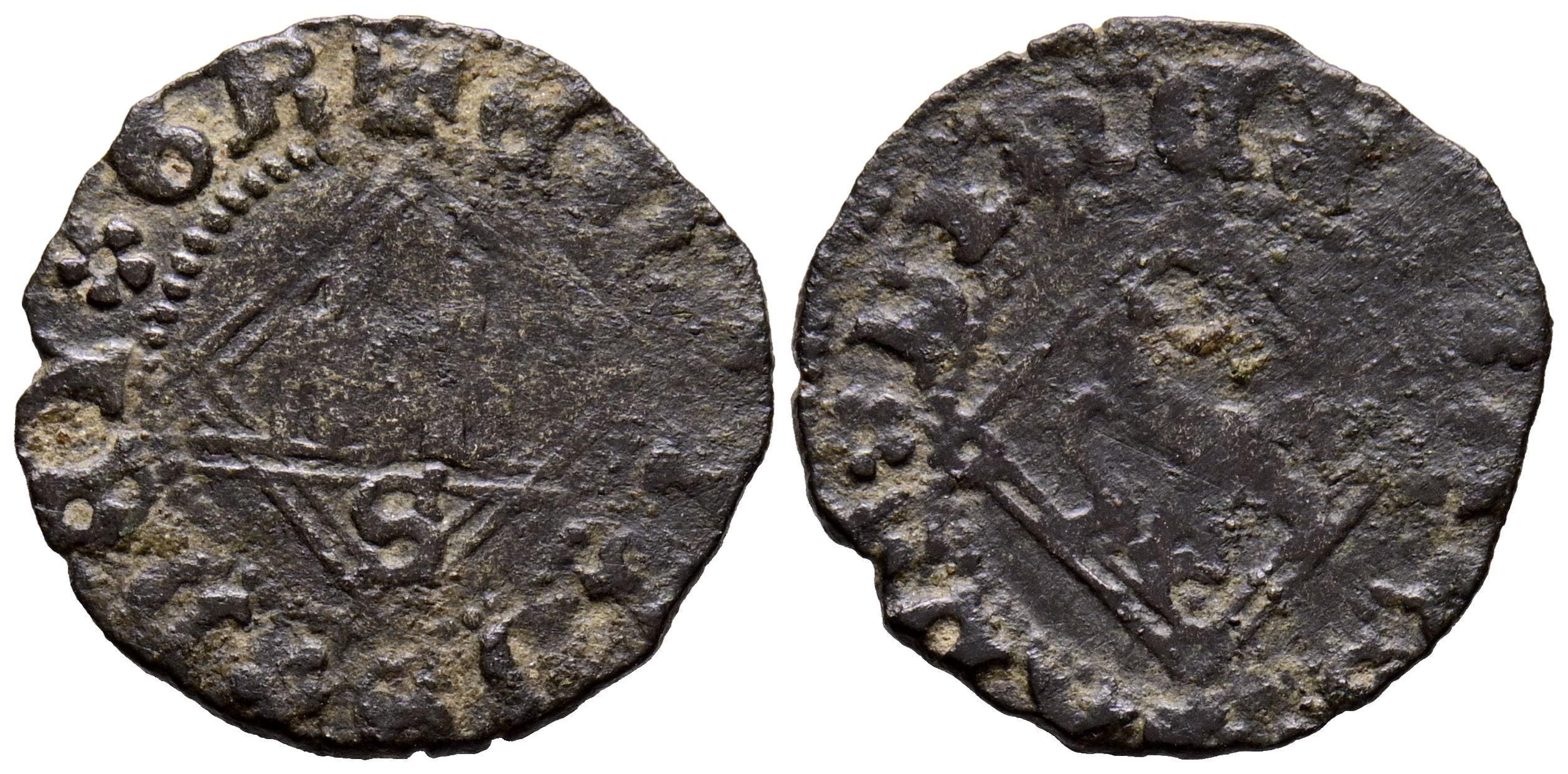 HENRY IV (1454-1474). White rhombus. (Ve. 1.04g/17mm). Seville. (Imperatrix E4:31.38; FAB-834). Obv: Castle, below S, all within beading, around legend: ENRICVS DEI GR. Rev: Rampant and crowned lion left, all within beading, around legend: XPS VINCIT XPS REGNAT. VF.