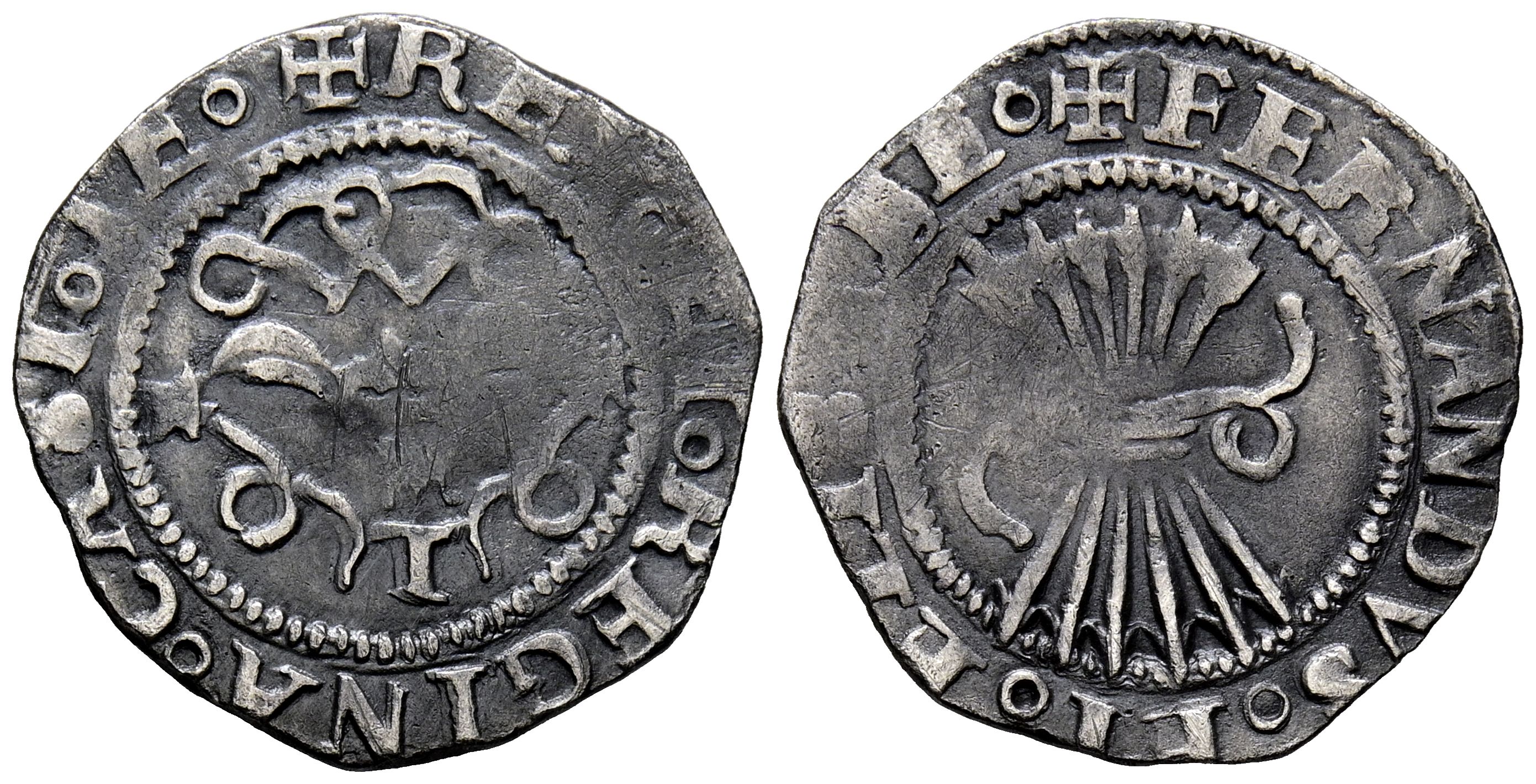 CATHOLIC KINGS (1474-1504). 1/2 Real. (Ar. 1.64g/19mm). S/D. Toledo. (Cal-2019-288). Exchanged legend. VF-.