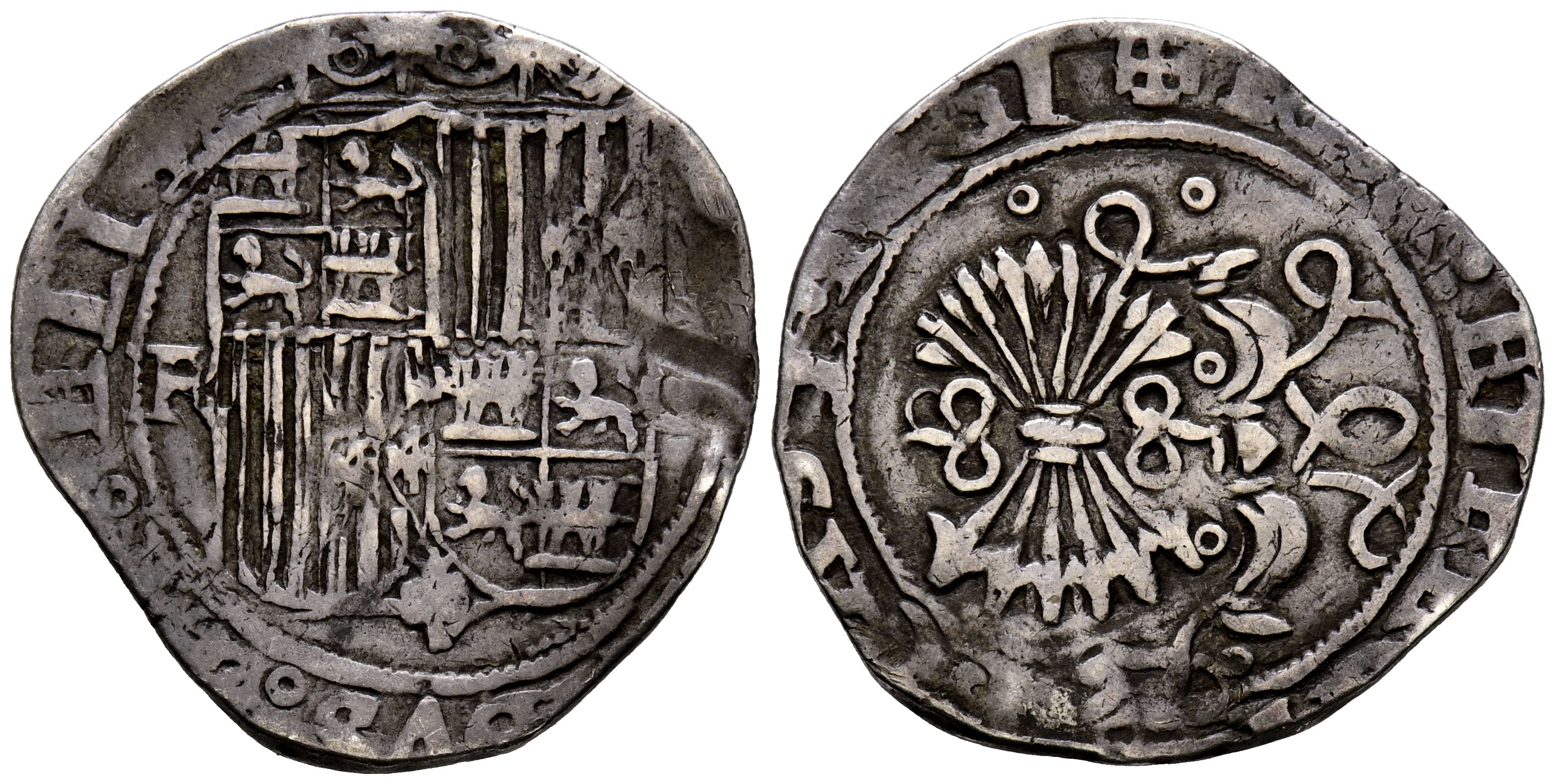 CATHOLIC KINGS (1474-1504). Real. (Ar. 3.27g/24mm). S/D. Grenade. (Cal-2019-372). Very Fine. Irregular blank.