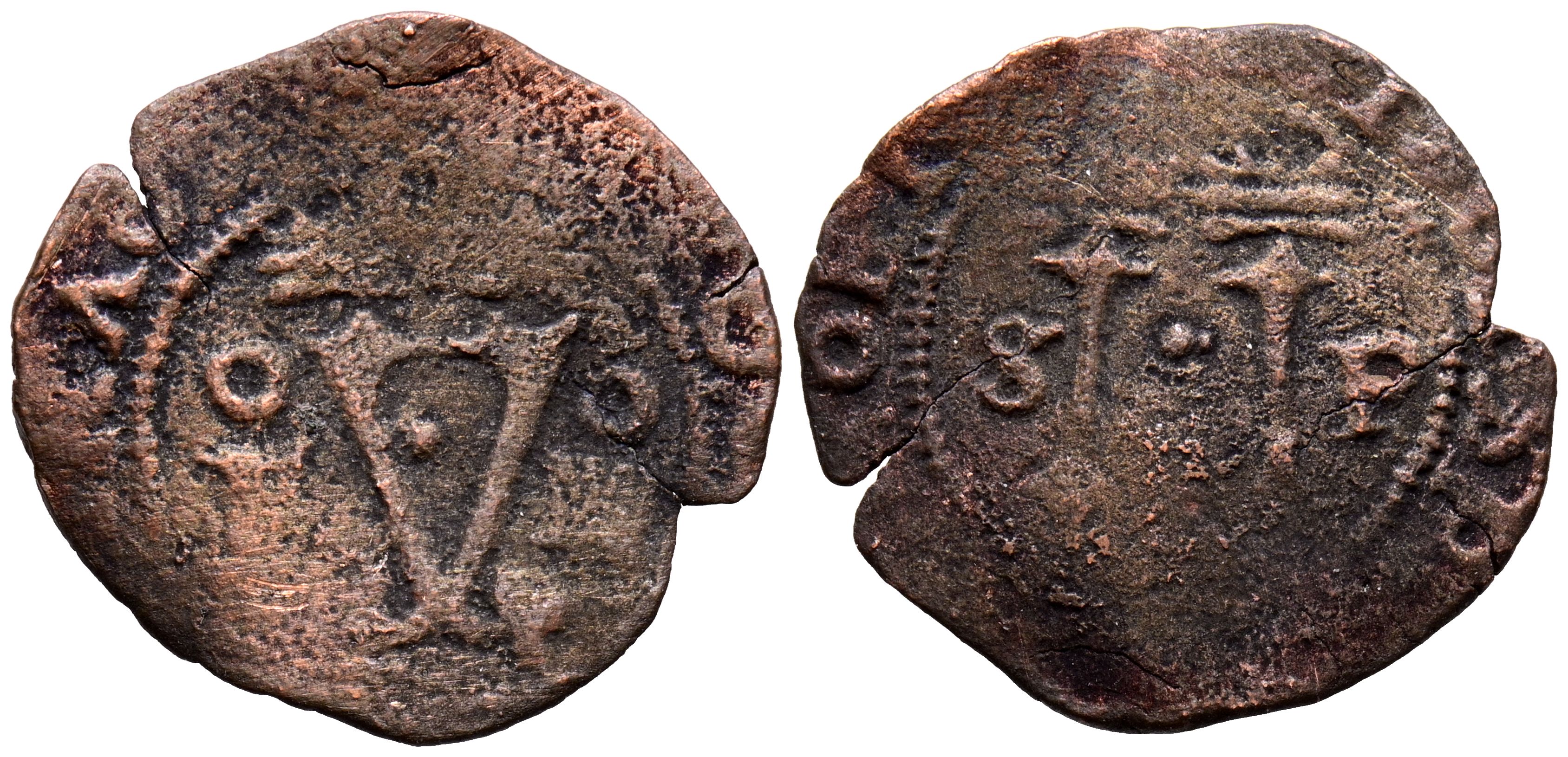 JUANA AND CHARLES (1504-1555). 4 Maravedis. (Ae. 2.19g/25mm). Santo Domingo. (Cal-2019-35). Good.