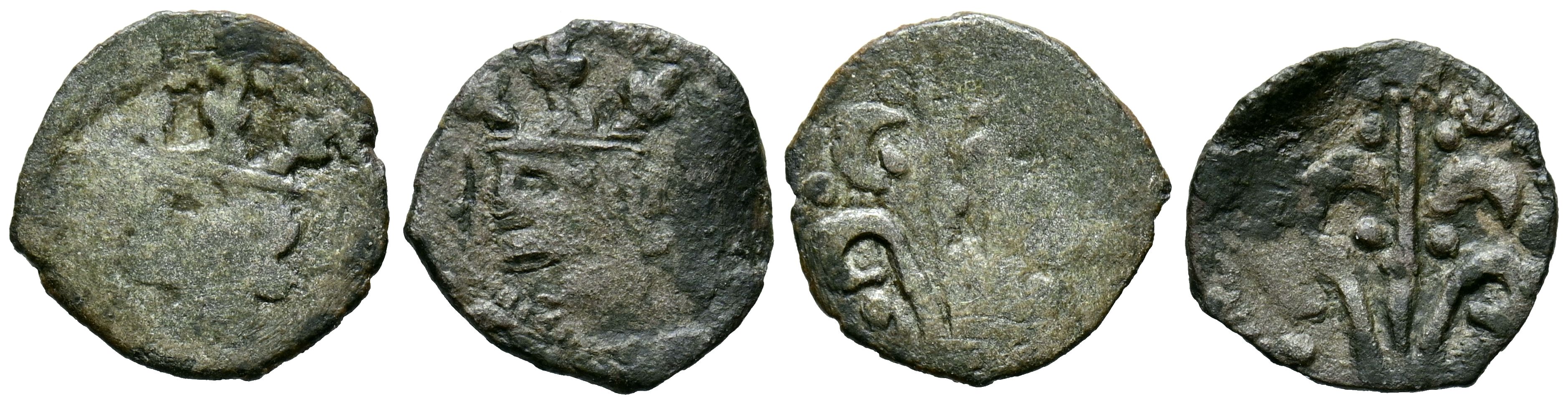 CARLOS I (1516-1556). Pair of Diner coins from Xátiva. (Cal-2019-9). War of the Germanias. Different sizes and qualities. TO BE EXAMINED.