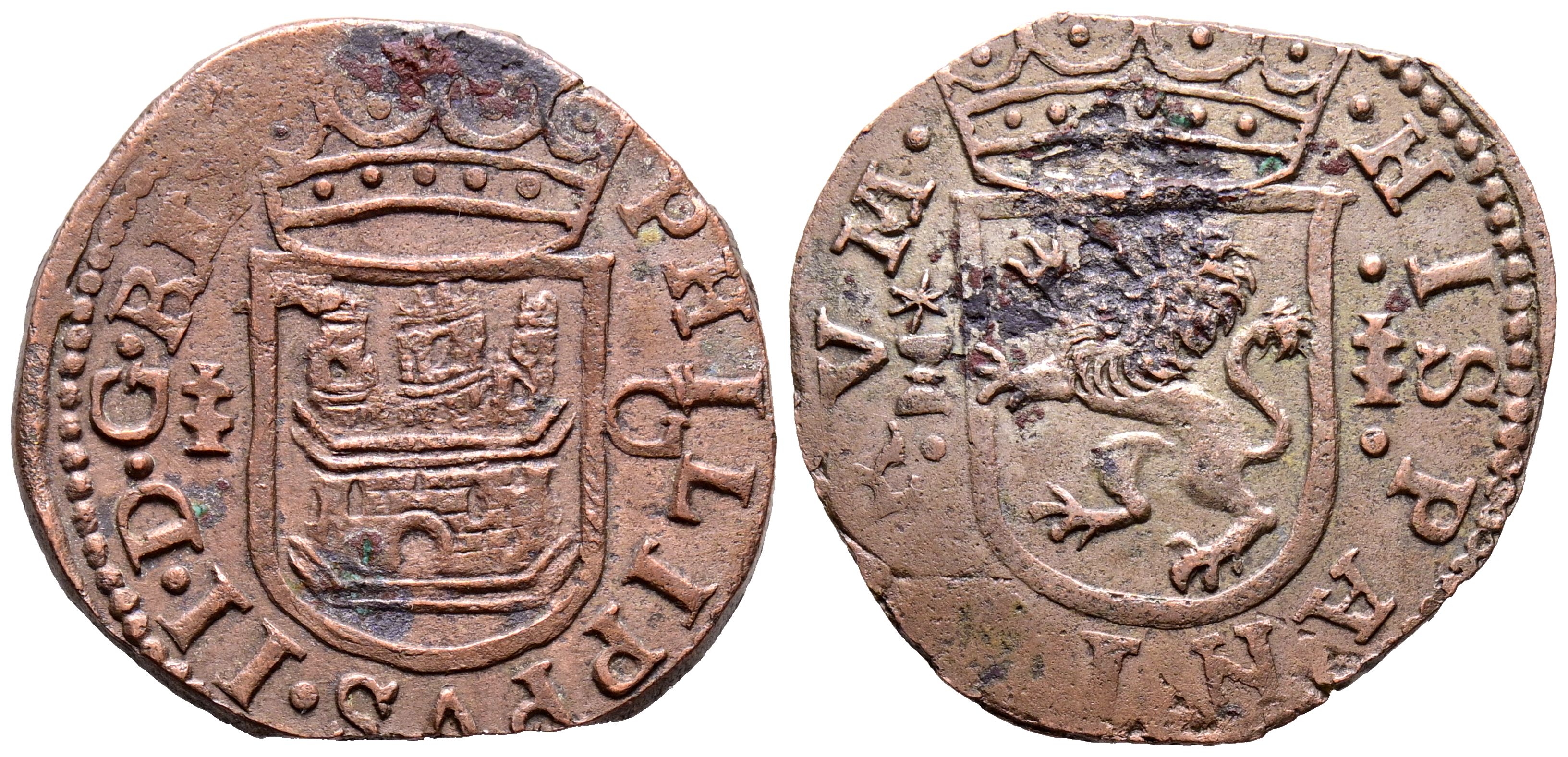 PHILIP II (1556-1598). Quart. (Ve. 2.75g/23mm). S/D. Cuenca. (Cal-2019-79). Castle between ermine and G. Very Fine. Despite its excellent workmanship, for some researchers this piece is considered a period fake.