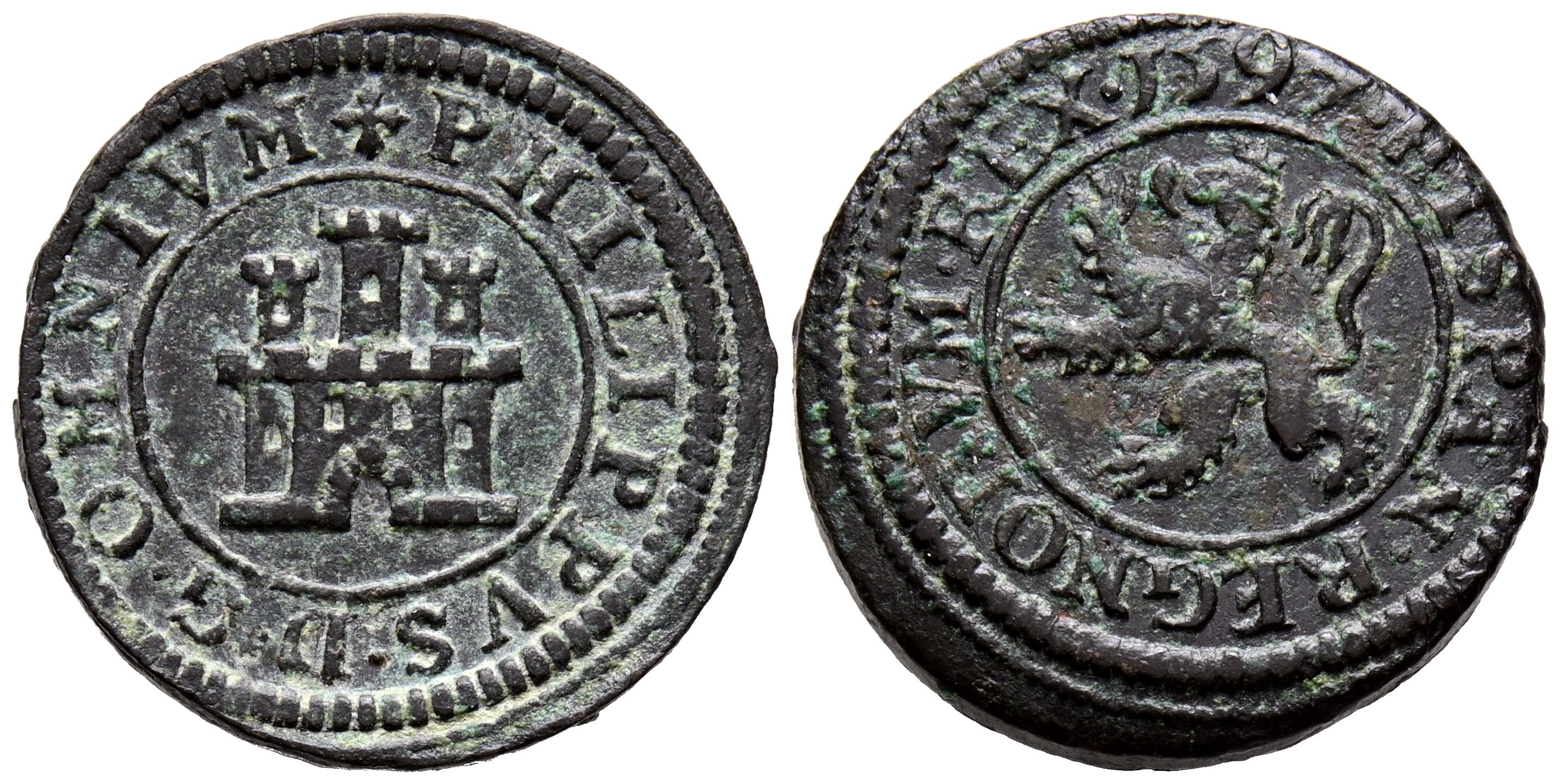 PHILIP II (1556-1598). 2 Maravedis. (Ae. 3.64g/20mm). 1597. Segovia. (Cal-2019-86). Without mint indicator or value. Good Very Fine.