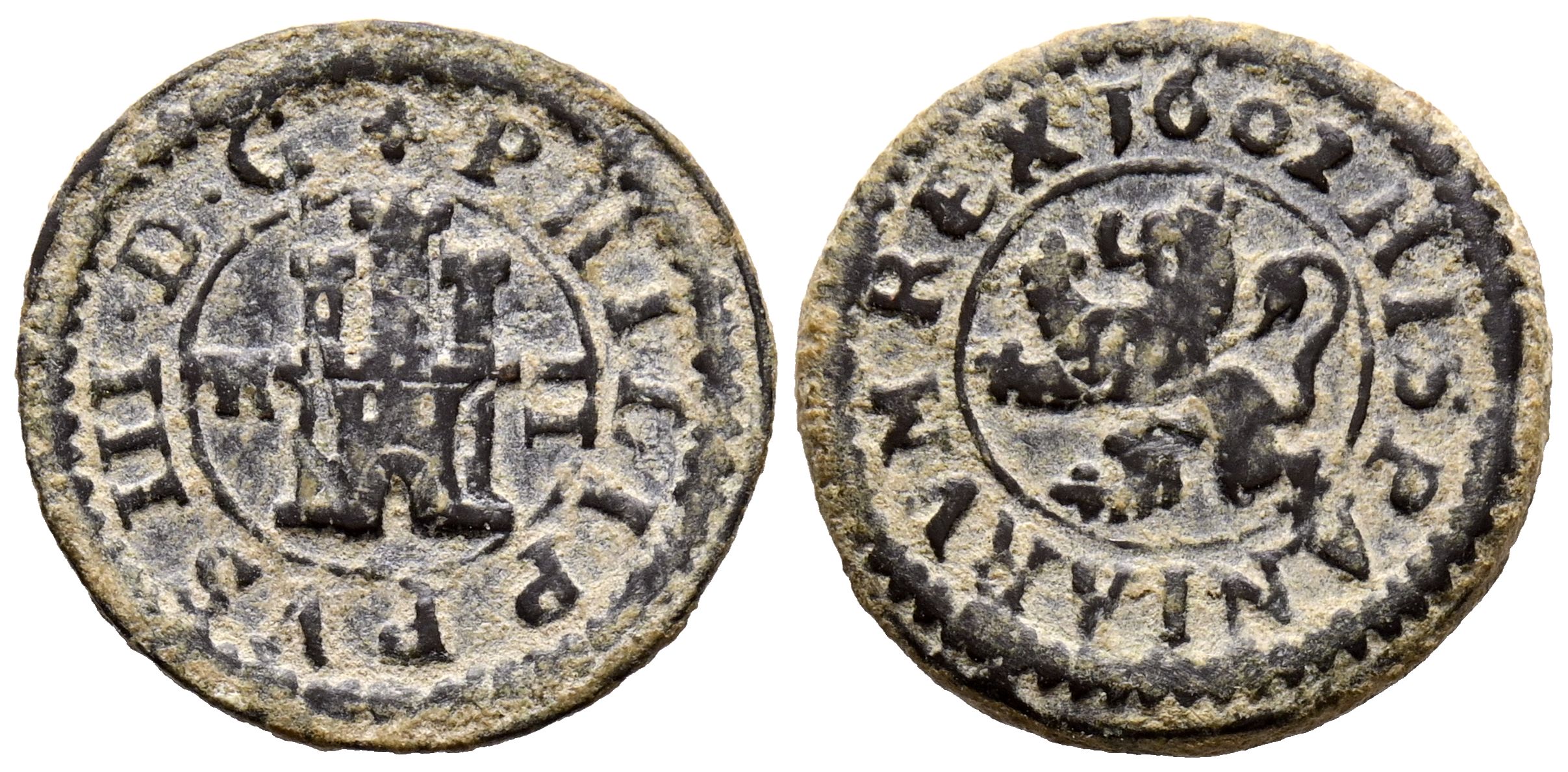 PHILIP III (1598-1621). 2 Maravedís. (Ae. 1.63g/16mm). 1602. Segovia. (Cal-2019-184). Horizontal aqueduct. VF.