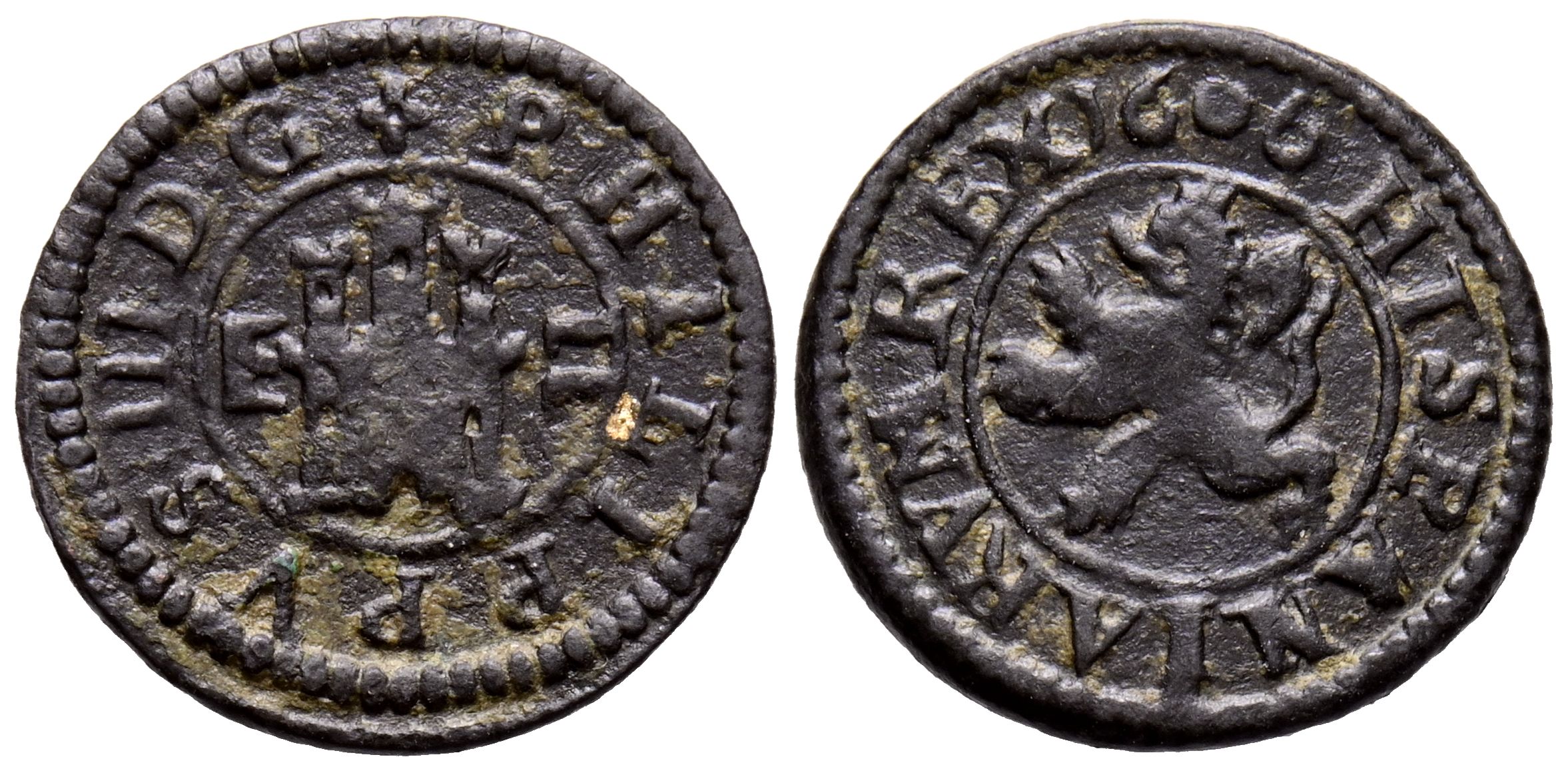 PHILIP III (1598-1621). 2 Maravedis. (Ae. 1.38g/16mm). 1606. Segovia. (Cal-2019-191). Very Fine.