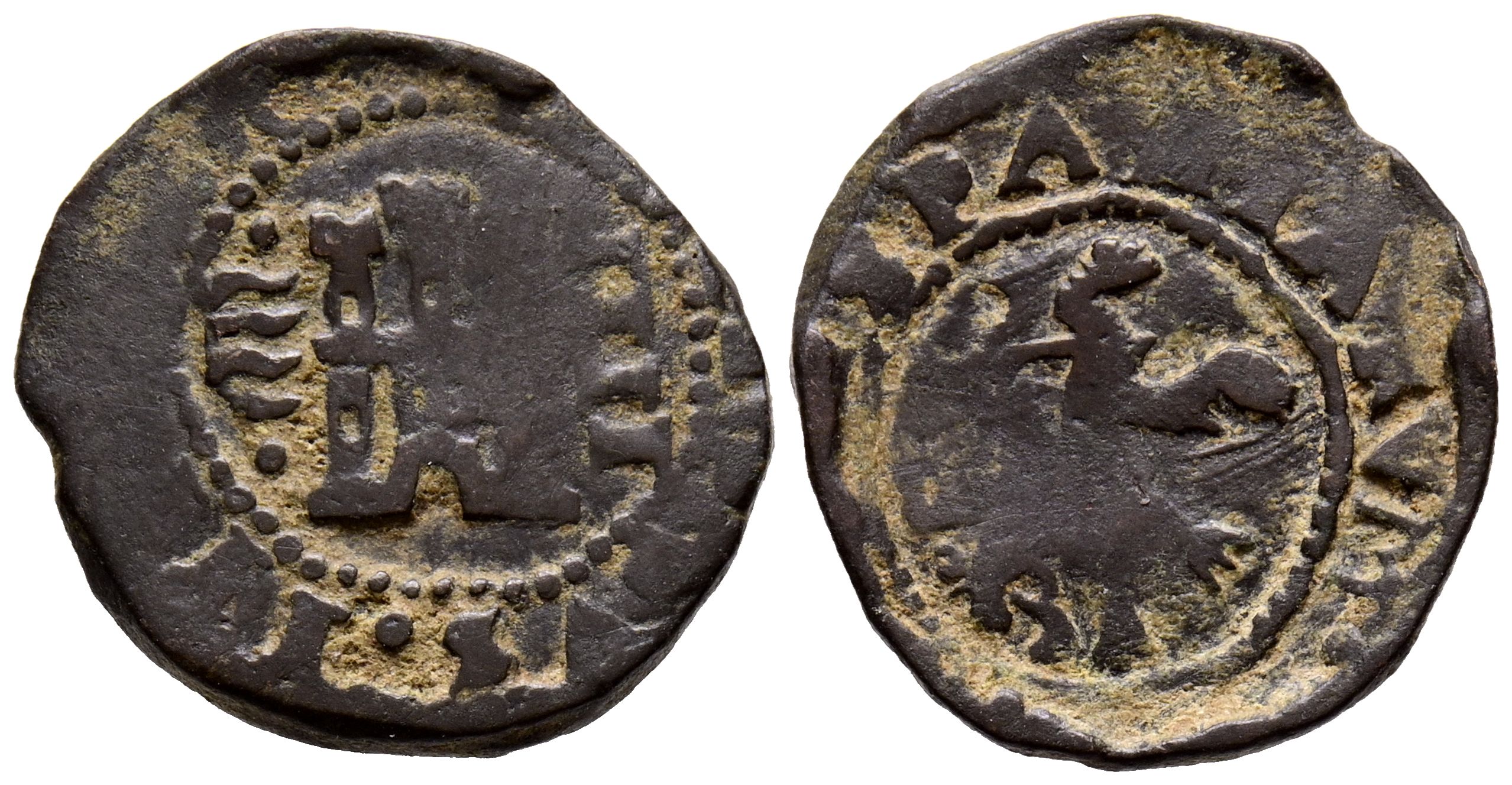PHILIP III (1598-1621). 4 Maravedís. (Ae. 2.80g/18mm). Date not visible. Valladolid. (Cal-2019-Type 66). VF-. Very rare.