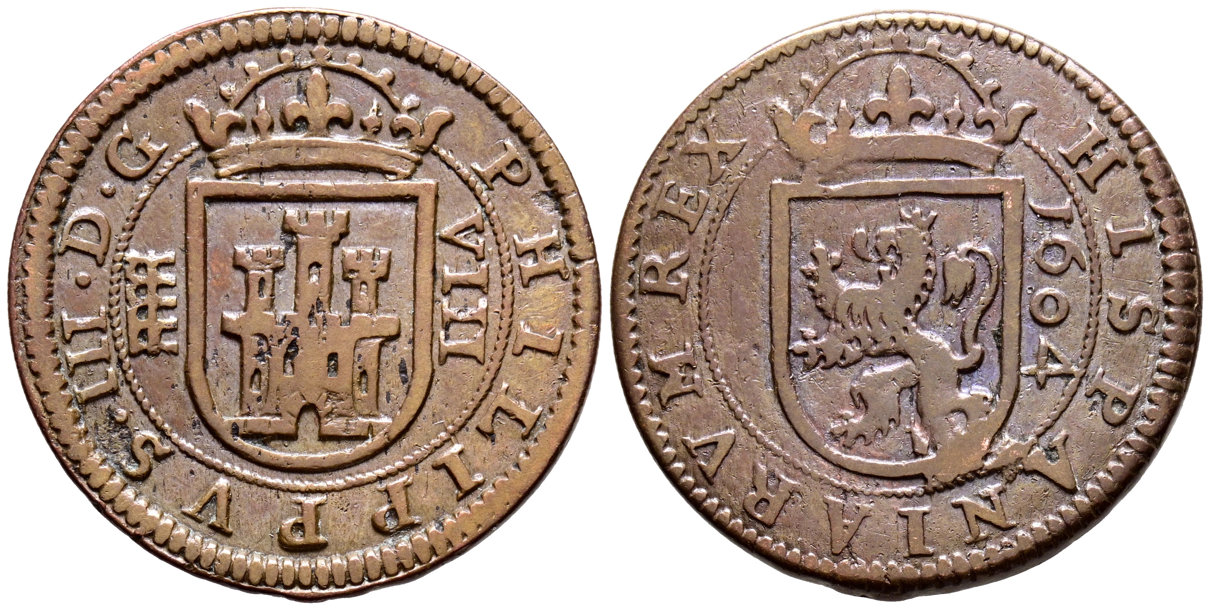 PHILIP III (1598-1621). 8 Maravedis. (Ae. 6.08g/27mm). 1604. Segovia. (Cal-2019-326). Very Fine.