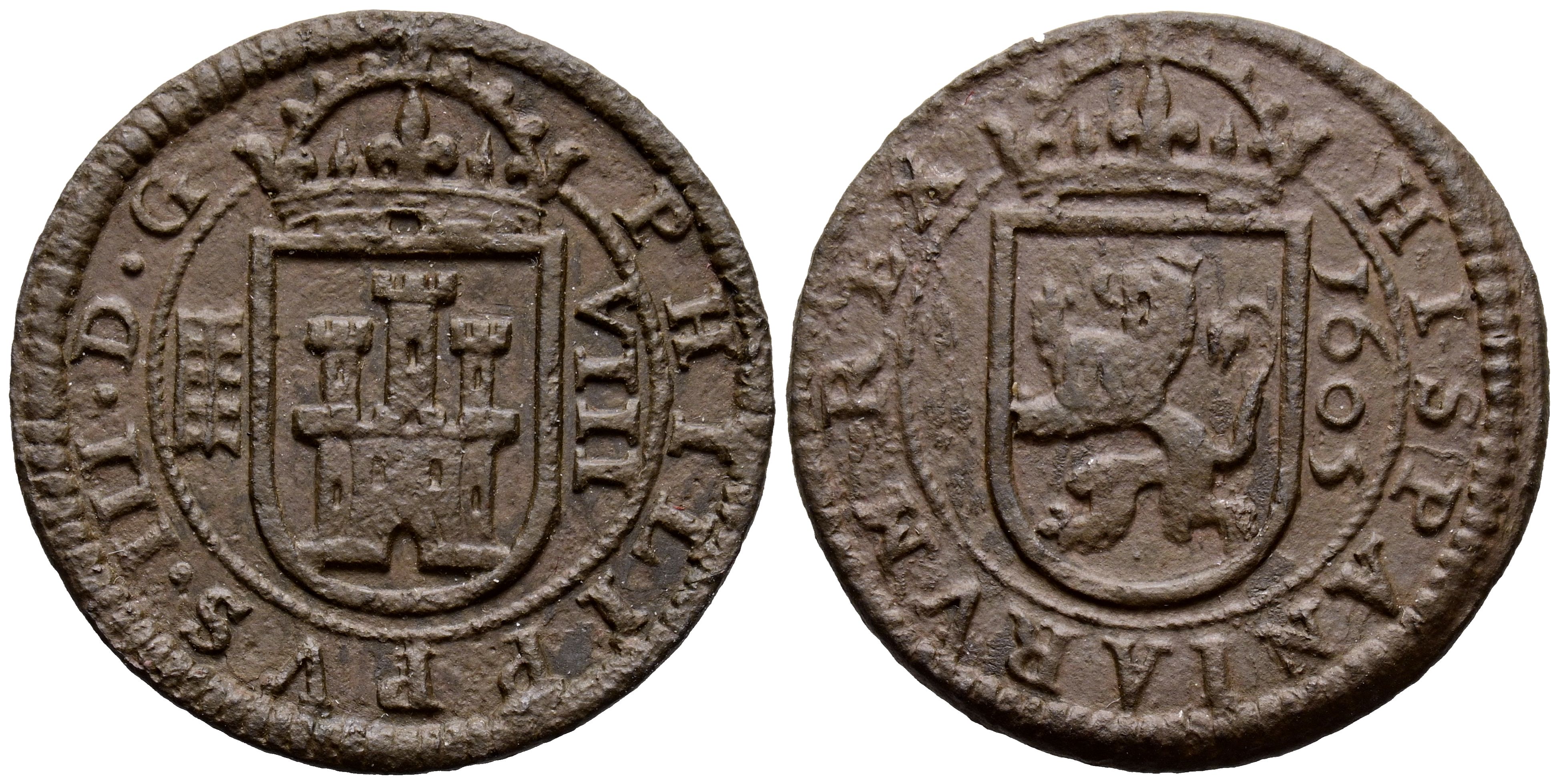 PHILIP III (1598-1621). 8 Maravedis. (Ae. 5.50g/27mm). 1605. Segovia. (Cal-2019-327). Very Fine.