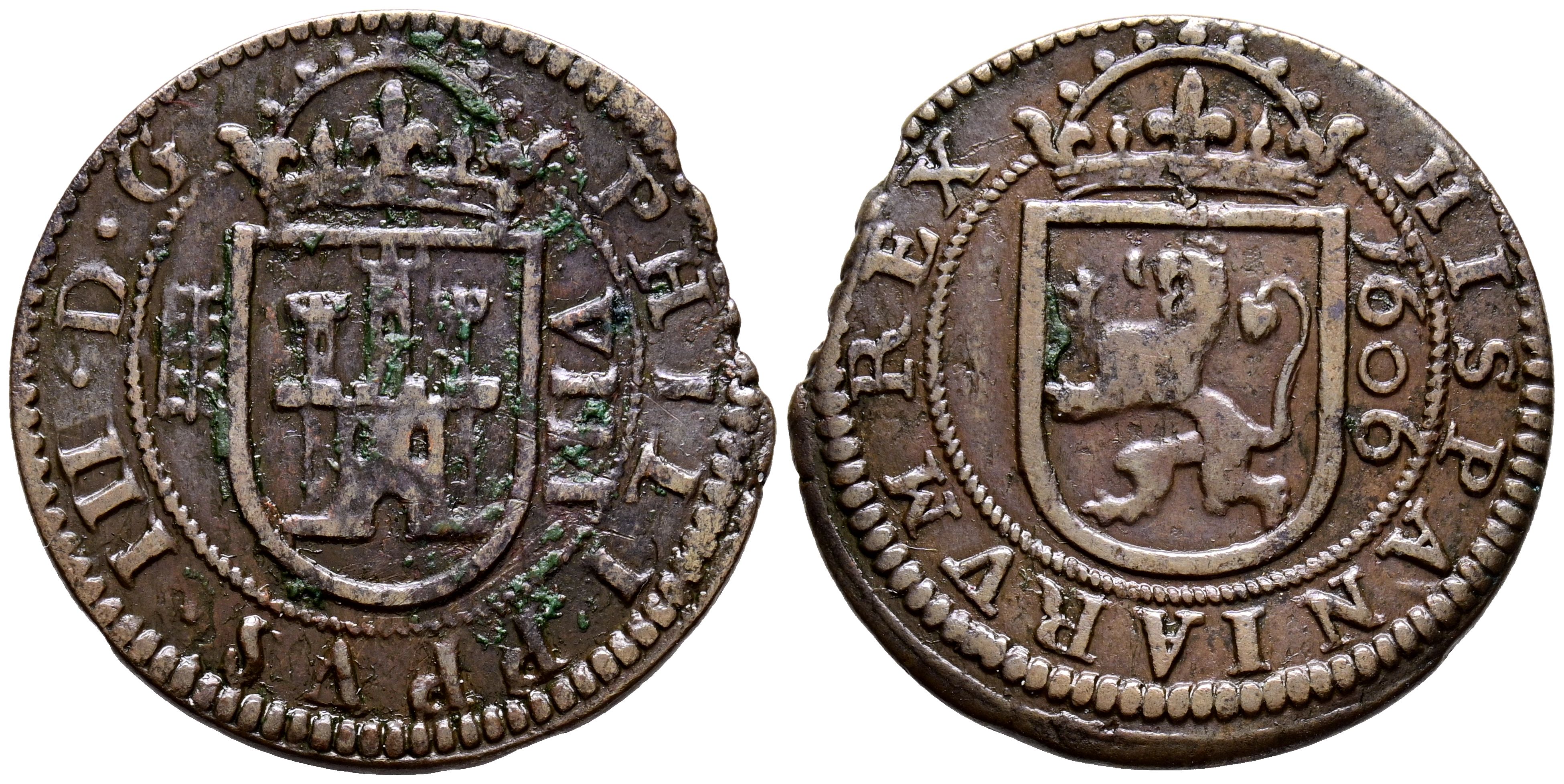 PHILIP III (1598-1621). 8 Maravedis. (Ae. 5.71g/28mm). 1606. Segovia. (Cal-2019-329). Very Fine. Verdin on obverse.