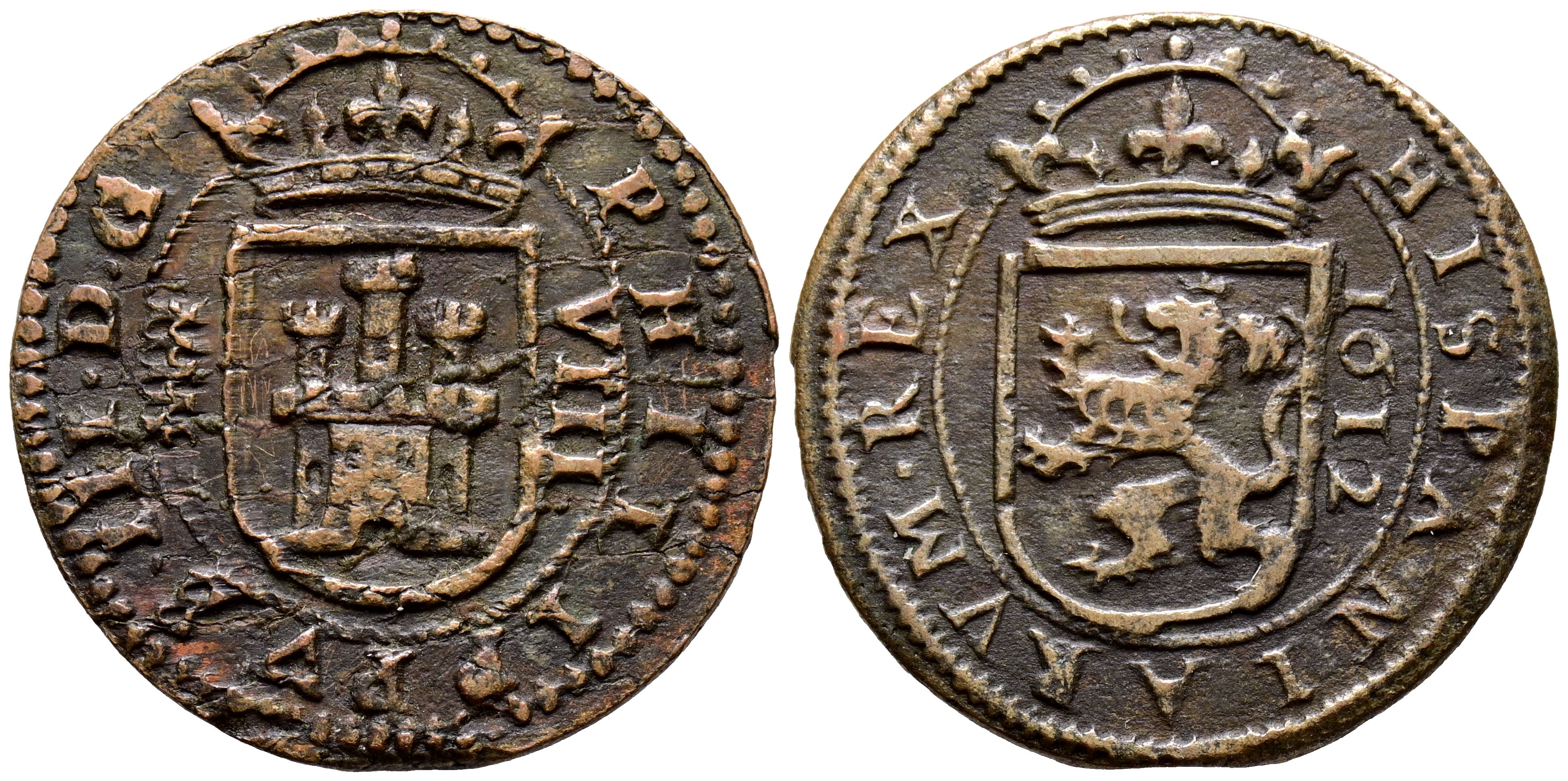 English PHILIP III (1598-1621). 8 Maravedis. (Ae. 5.18g/28mm). 1612. Segovia. (Cal-2019-333). Very Fine-.