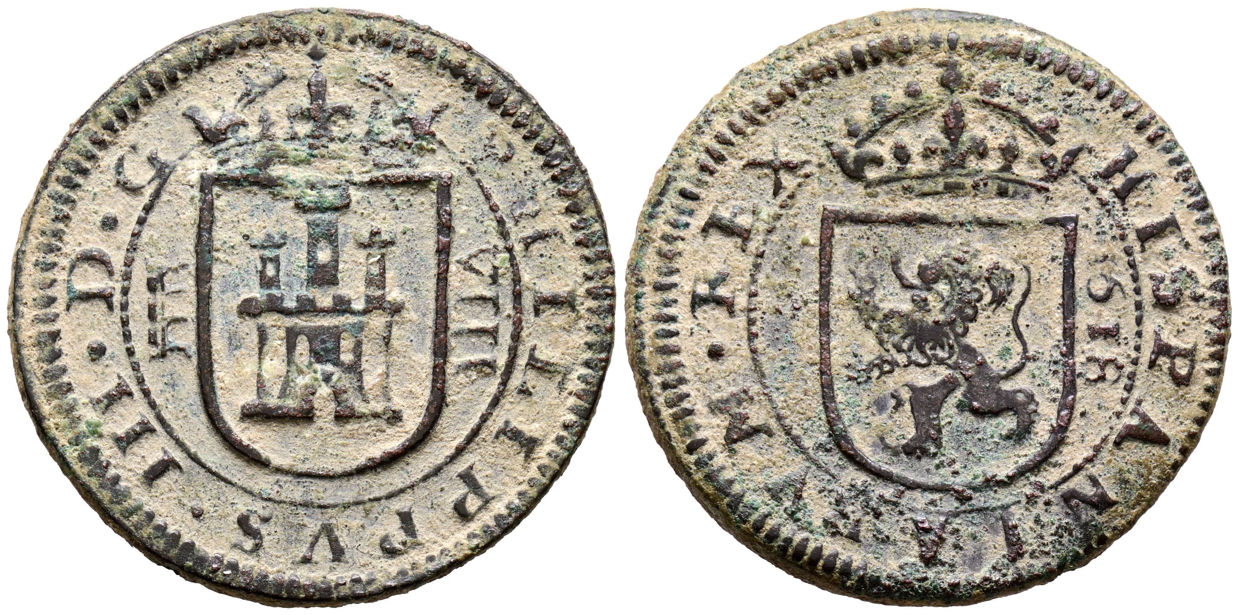 PHILIP III (1598-1621). 8 Maravedis. (Ae. 6.44g/28mm). 1618. Segovia. (Cal-2019-338). Very Fine.