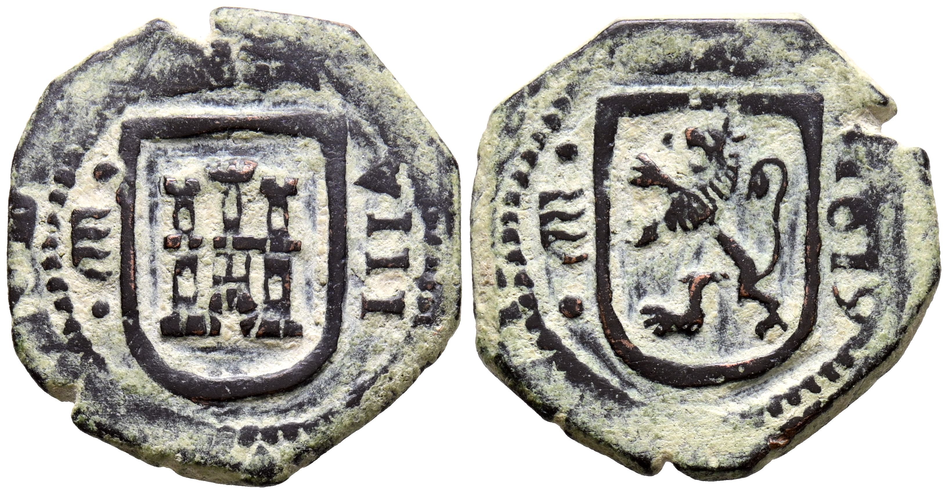 PHILIP III (1598-1621). 8 Maravedís. (Ae. 5.88g/23mm). 1619. Valladolid. (Cal-2019-358). VF. Interesting specimen.