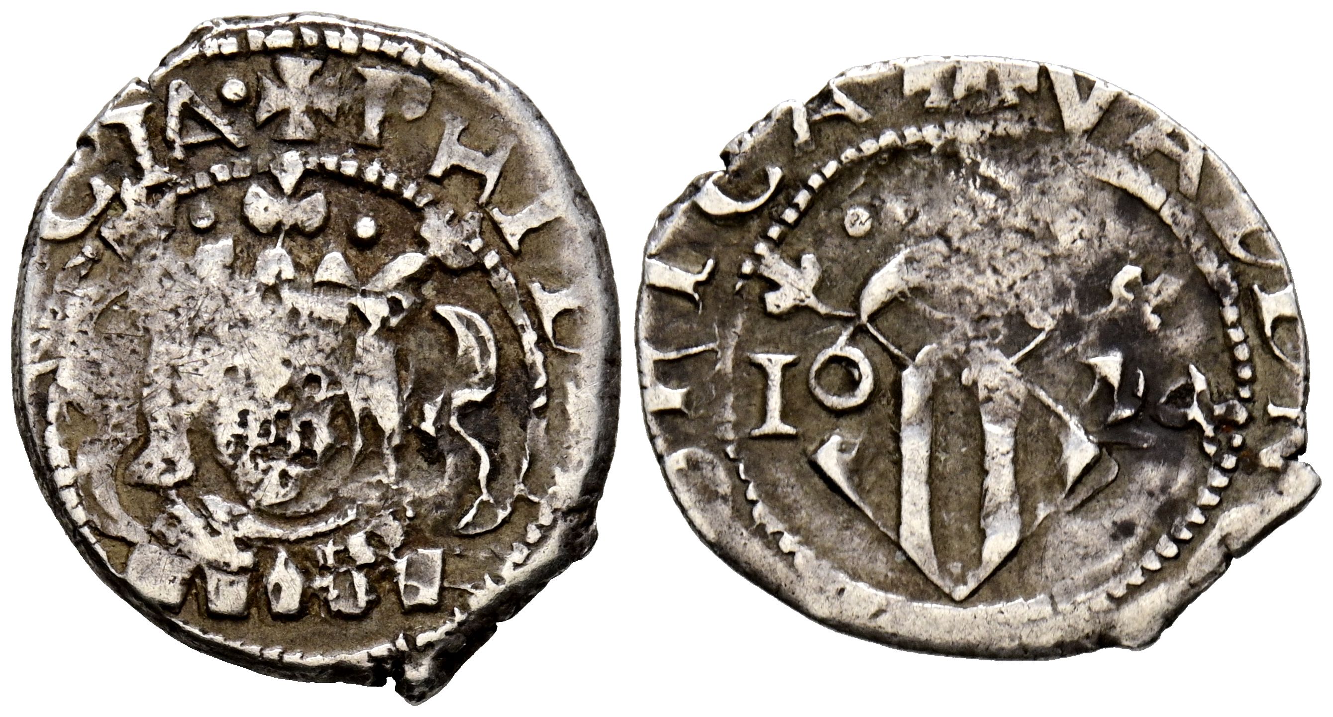 English PHILIP III (1598-1621). Divuitè. (Ar. 2.10g/21mm). 1620. Valencia. (Cal-2019-567). Fine.