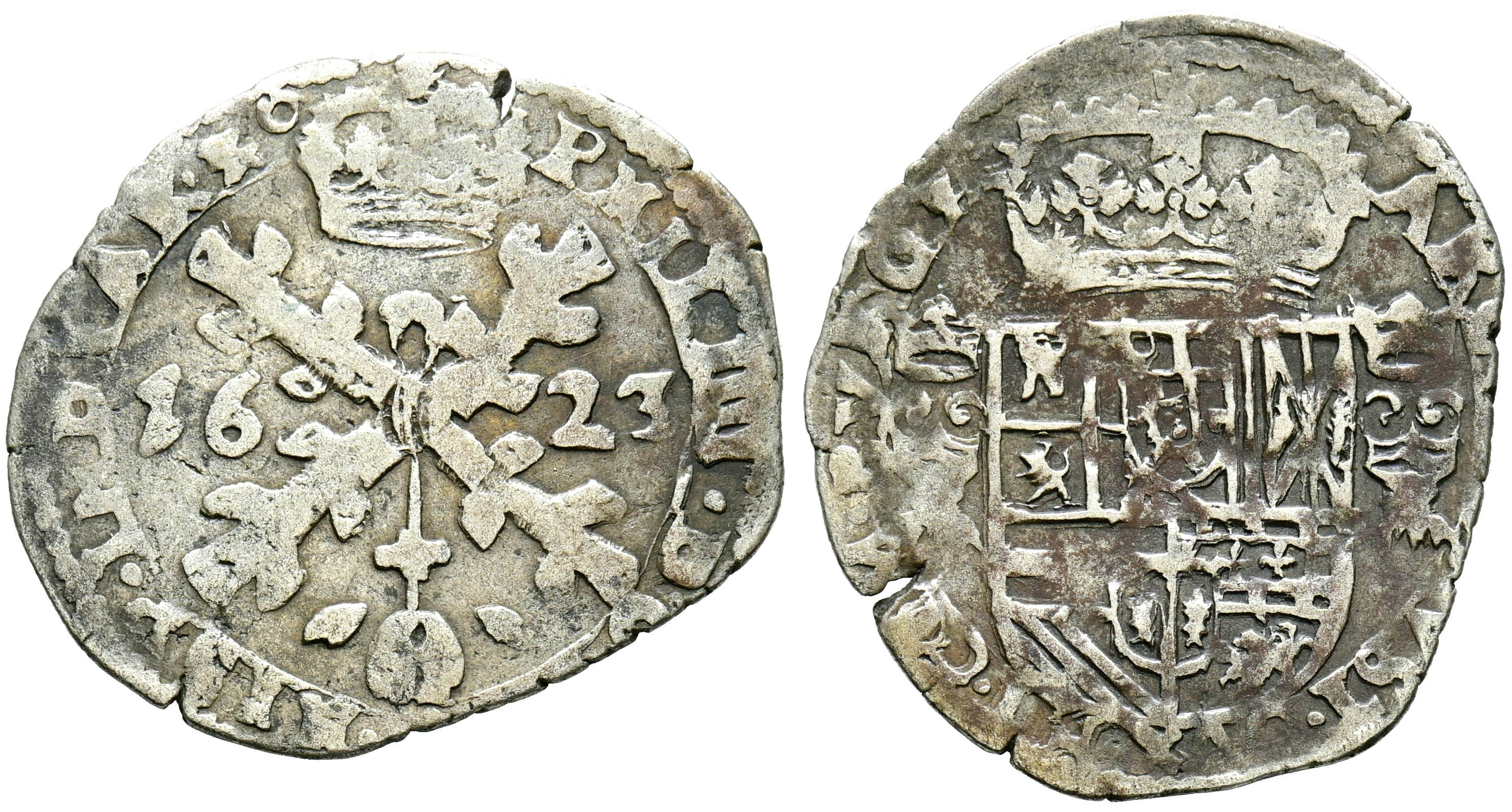PHILIP IV (1621-1665). 1/32 Patagon. (Ar. 2.03g/25mm). 1623. Dole (Franche-Comté). (Vicenti does not mention). VF-.