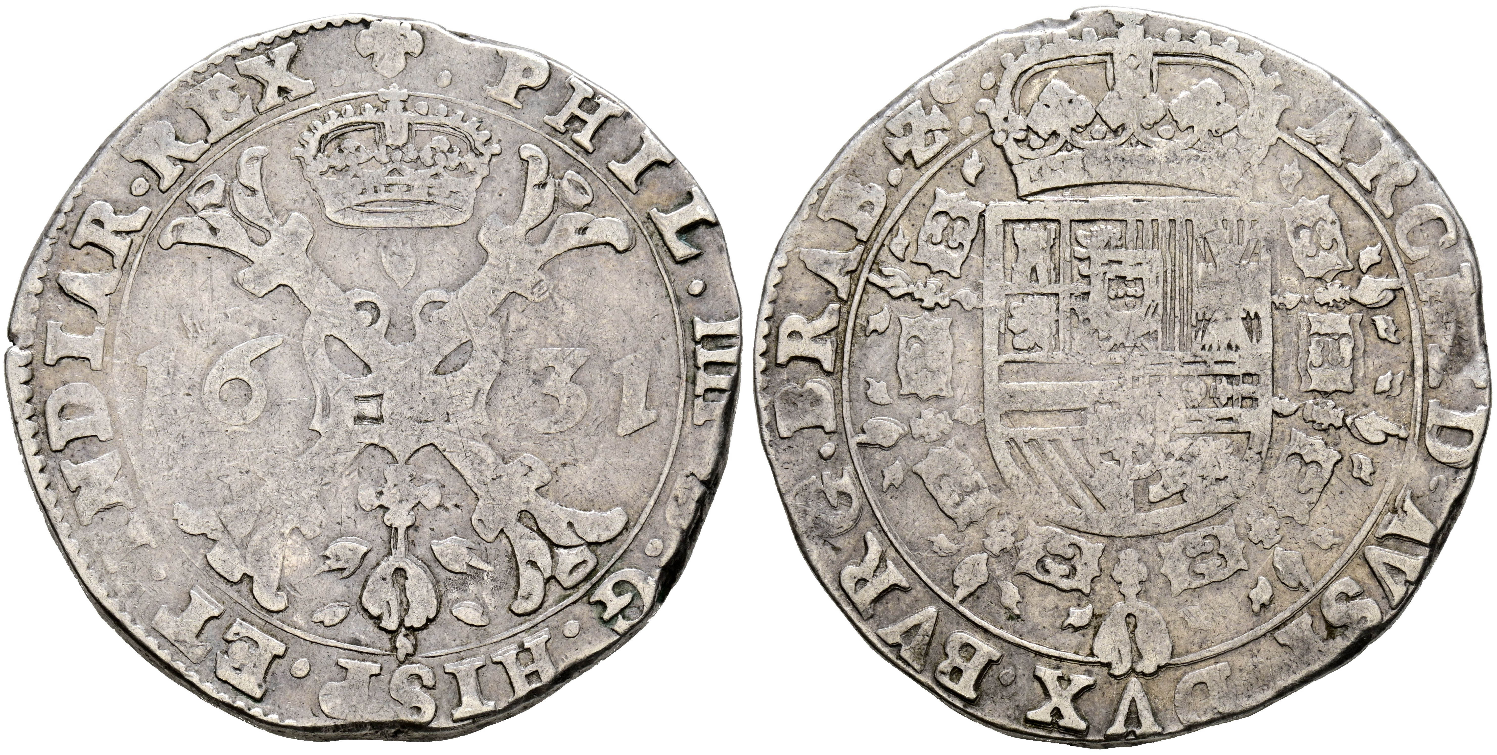 PHILIP IV (1621-1665). Patagonian. (Ar. 27.93g/42mm). 1631. Brussels. (Vicenti 672). VF.