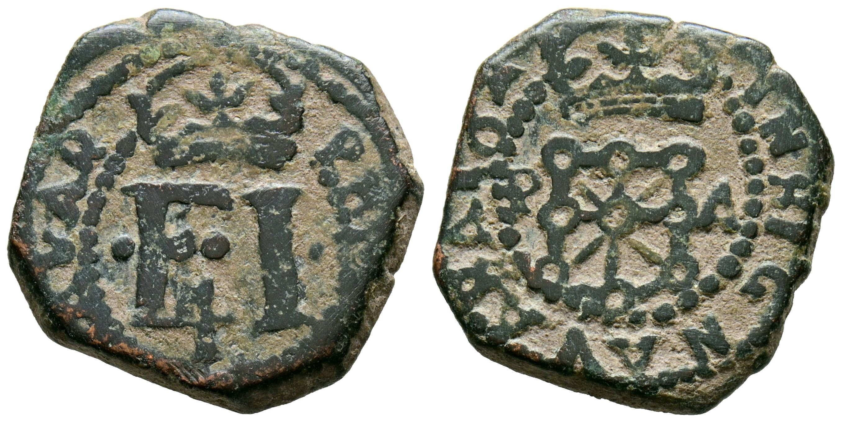 PHILIP IV (1621-1665). 4 Cornados. (Ae. 3.61g/18mm). 1624? (last digit of the date barely visible). Pamplona. (Cal-2019-Type 19). VF.
