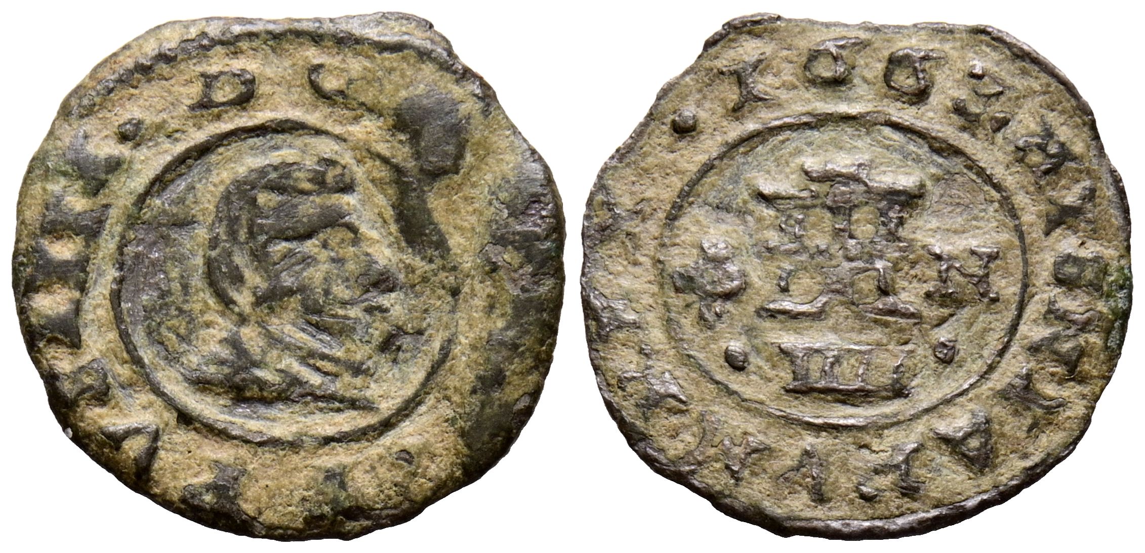 PHILIP IV (1621-1665). 4 Maravedis. (Ae. 0.81g/16mm). 1663. Granada N. (Cal-2019-225). Very Fine-.
