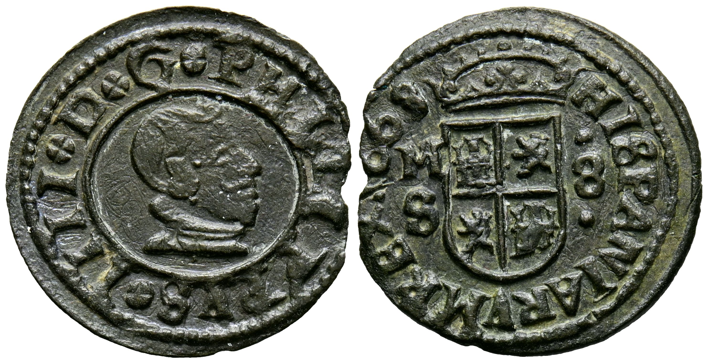 PHILIP IV (1621-1665). 8 Maravedis. (Ae. 1.50g/22mm). 1663. Madrid S. (Cal-2019-367). Good Very Fine. Missed coin.