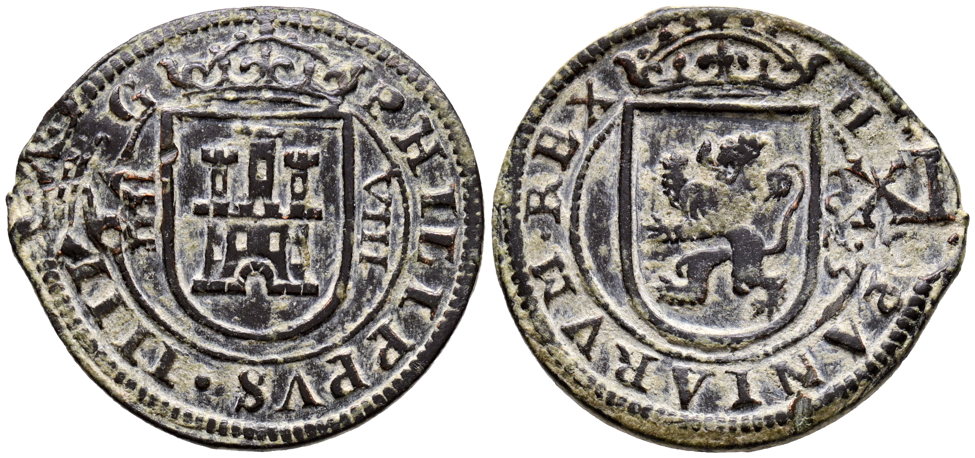 PHILIP IV (1621-1665). 8 Maravedis. (Ae. 6.59g/29mm). 1623. Segovia. (Cal-2019-388). Stamp with value XII. Very Fine.