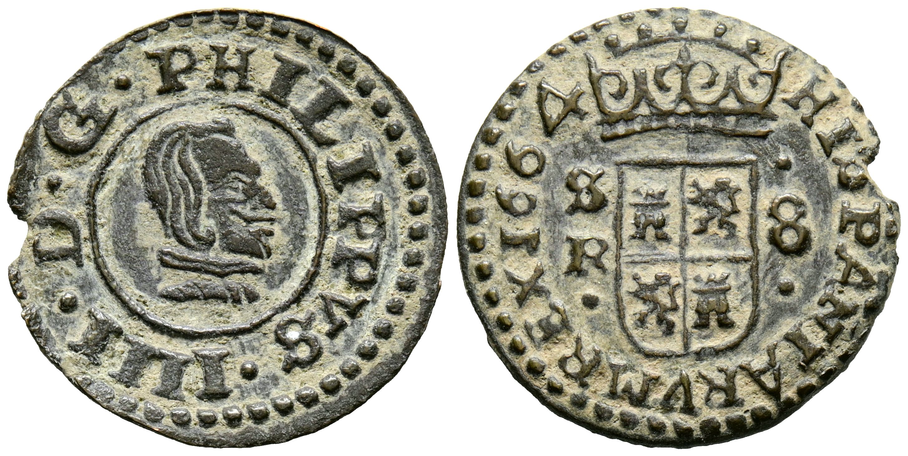 PHILIP IV (1621-1665). 8 Maravedis. (Ae. 2.01g/20mm). 1664. Sevilla R. (Cal-2019-407). Good Very Fine.
