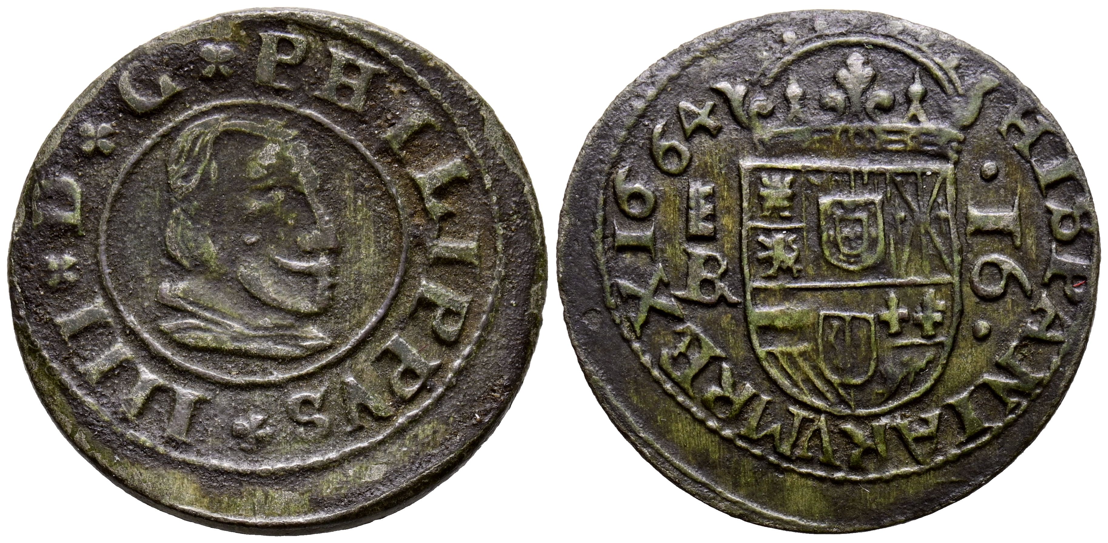 PHILIP IV (1621-1665). 16 Maravedis. (Ae. 4.07g/26mm). 1664. Segovia BR. (Cal-2019-491). Good Very Fine.