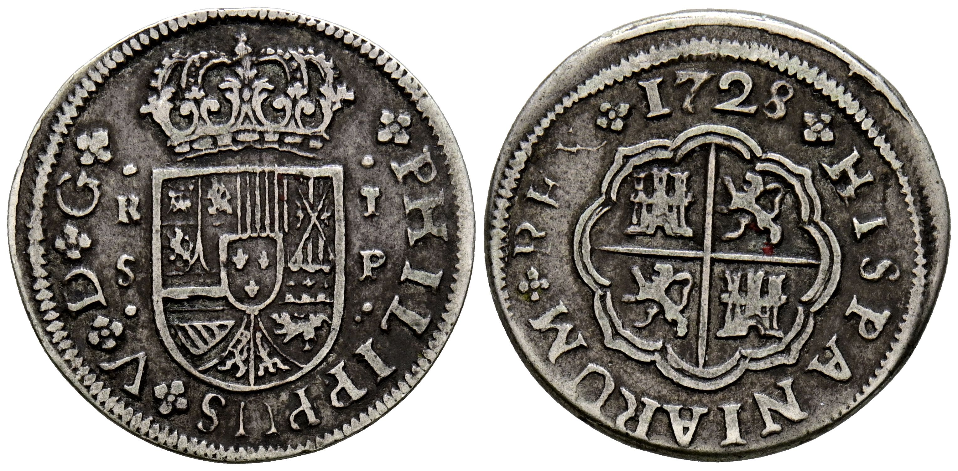 PHILIP V (1700-1746). 1 Royal. (Ar. 2.57g/21mm). 1728. Sevilla P. (Cal-2019-650). Very Fine.