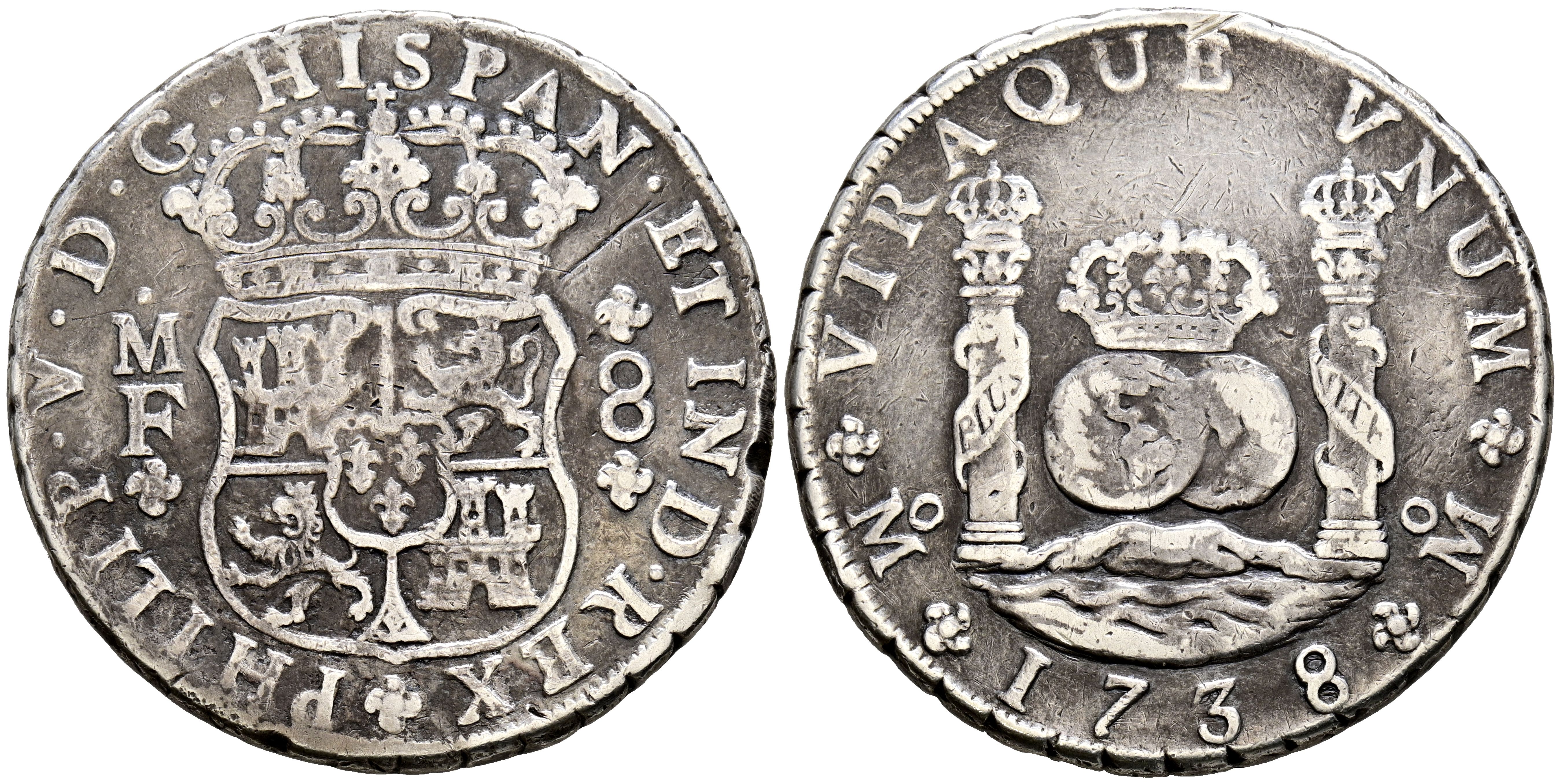 PHILIP V (1700-1746). 8 Reales. (Ar. 25.67g/39mm). 1738. Mexico MF. (Cal-2019-1449). VF-. Cleaned.