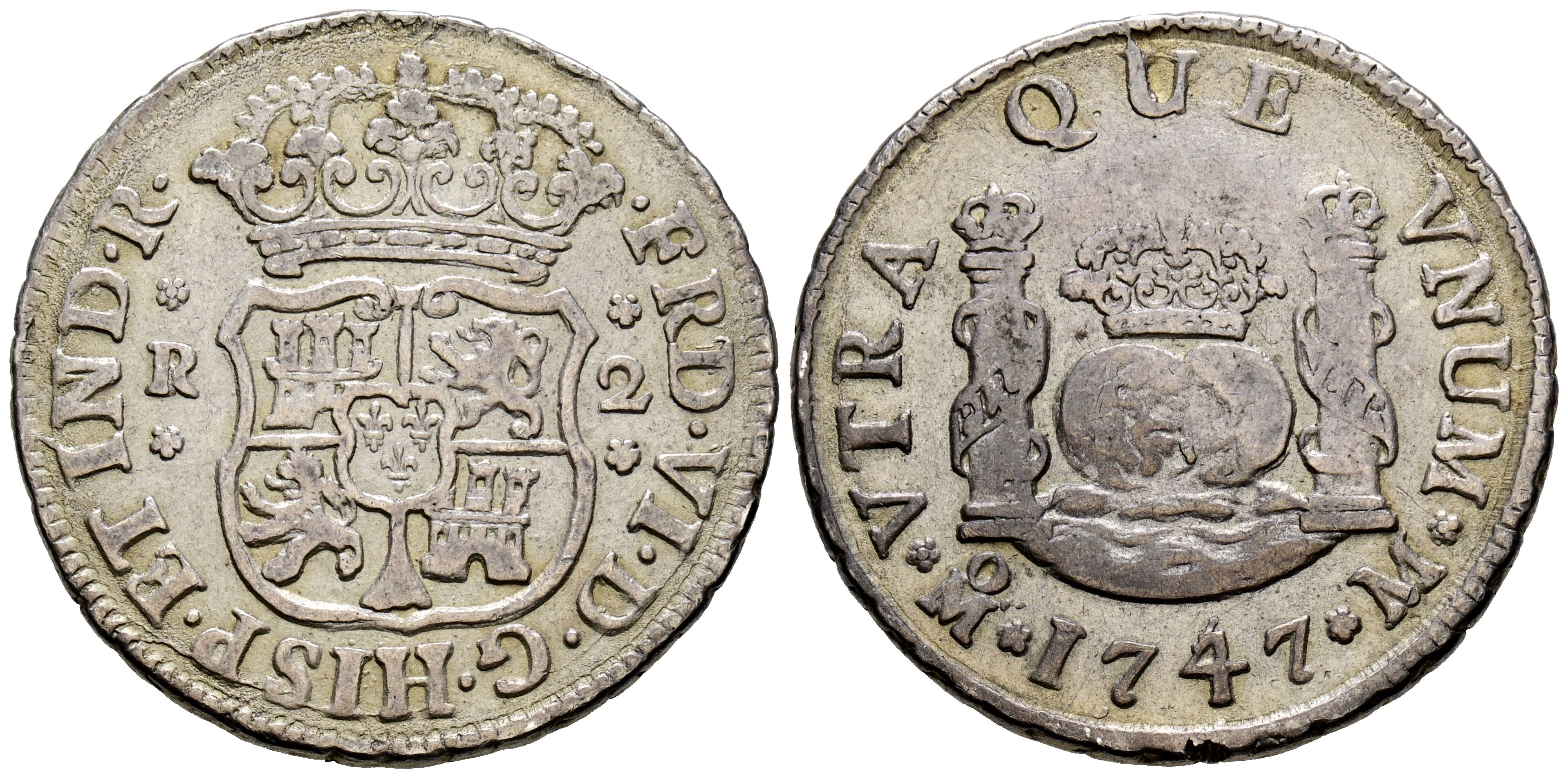 FERNANDO VI (1746-1759). 2 Reales. (Ar. 6.59g/27mm). 1747. Mexico M. (Cal-2019-304). Two royal crowns. VF.