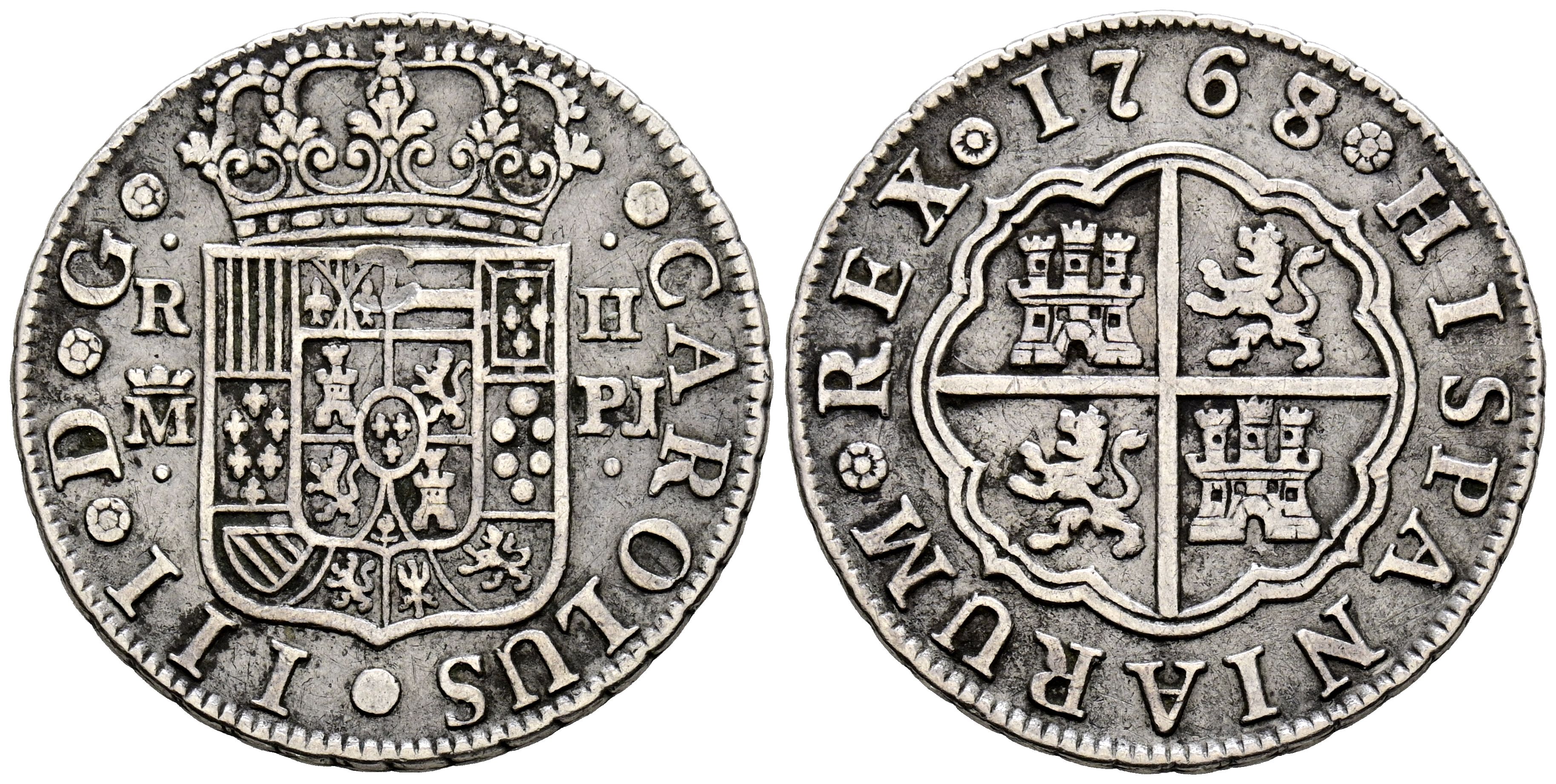 English CHARLES III (1759-1788). 2 Reales. (Ar. 5.54g/26mm). 1768/7. Madrid PJ. (Cal-2019-616). Very Fine.