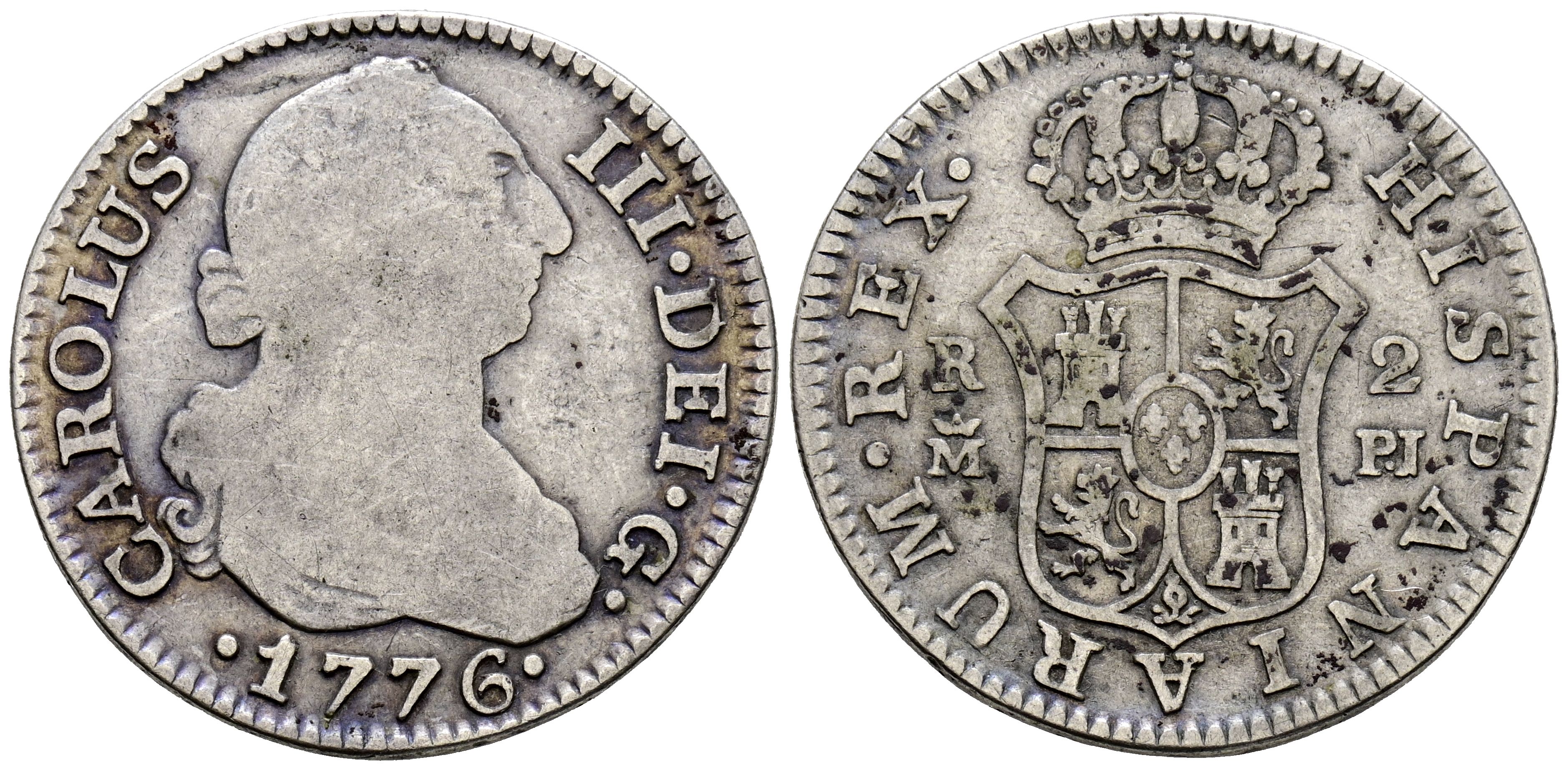 English CHARLES III (1759-1788). 2 Reales. (Ar. 5.53g/26mm). 1776. Madrid PJ. (Cal-2019-625). Very Fine-.