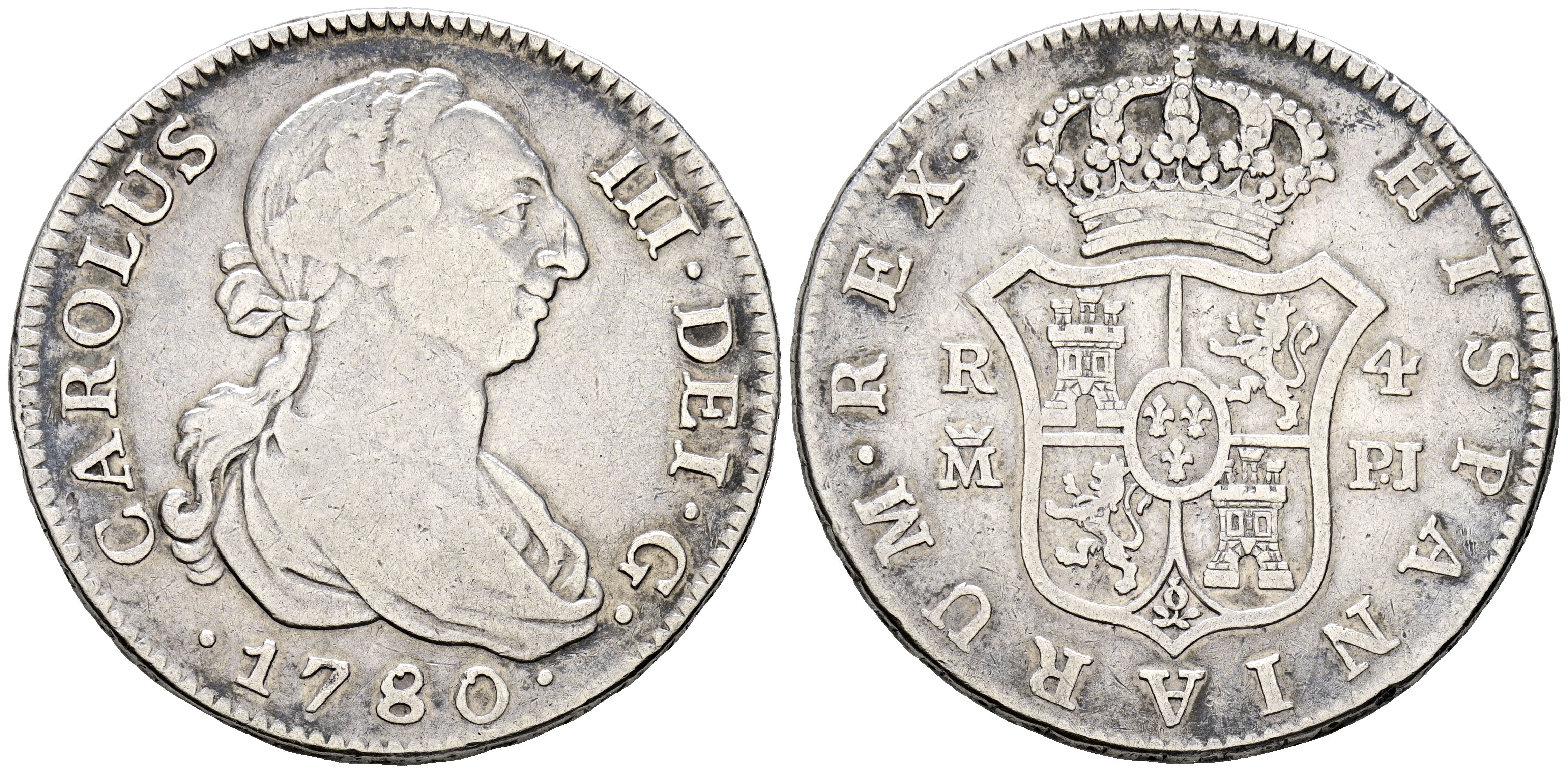 CHARLES III (1759-1788). 4 Reales (Ar. 13,20g/33mm). 1780. Madrid PJ. (Cal-2019-863). VF.