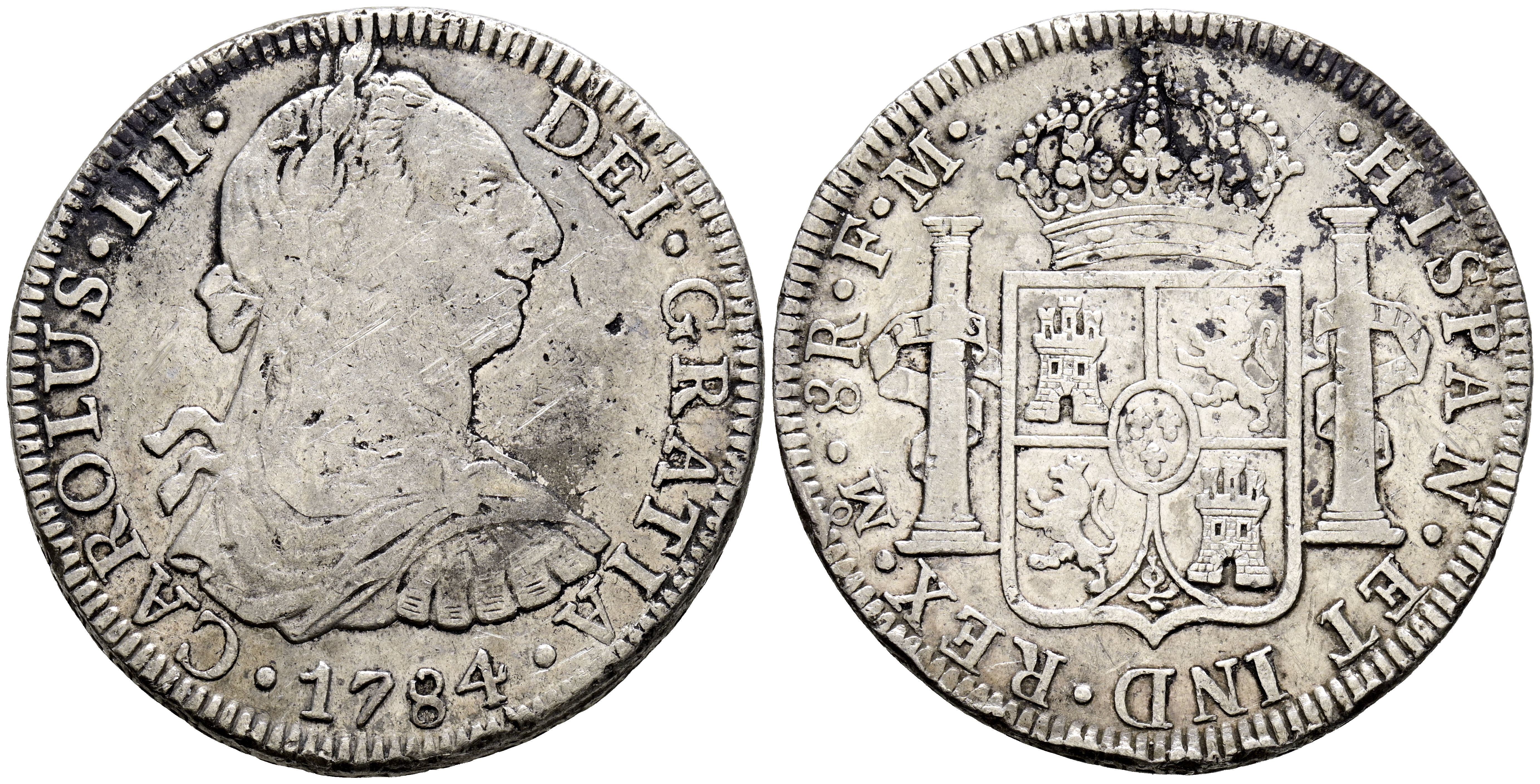 CHARLES III (1759-1788). 8 Reales. (Ar. 26.79g/39mm). 1784. Mexico FM. (Cal-2019-1126). VF-.