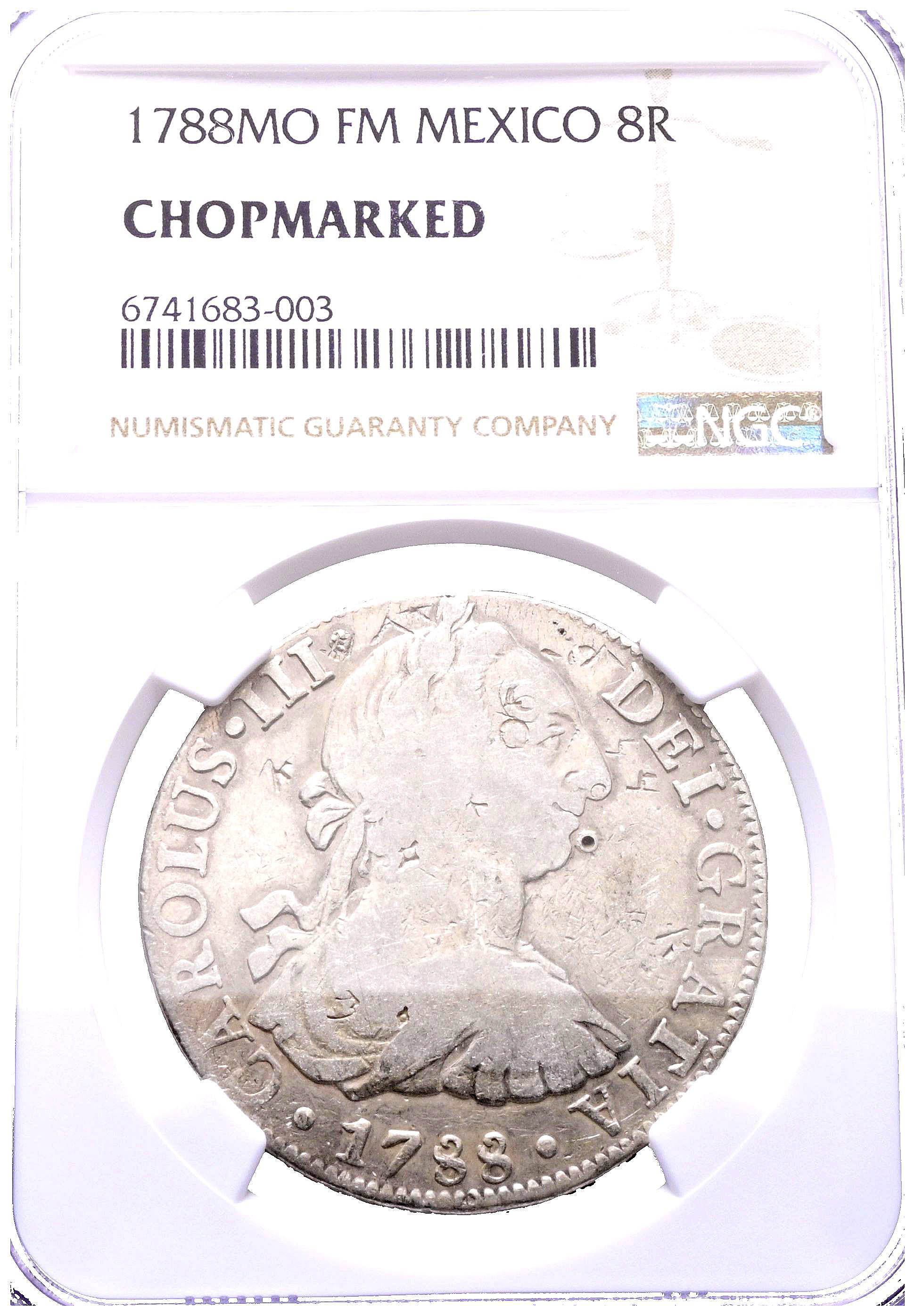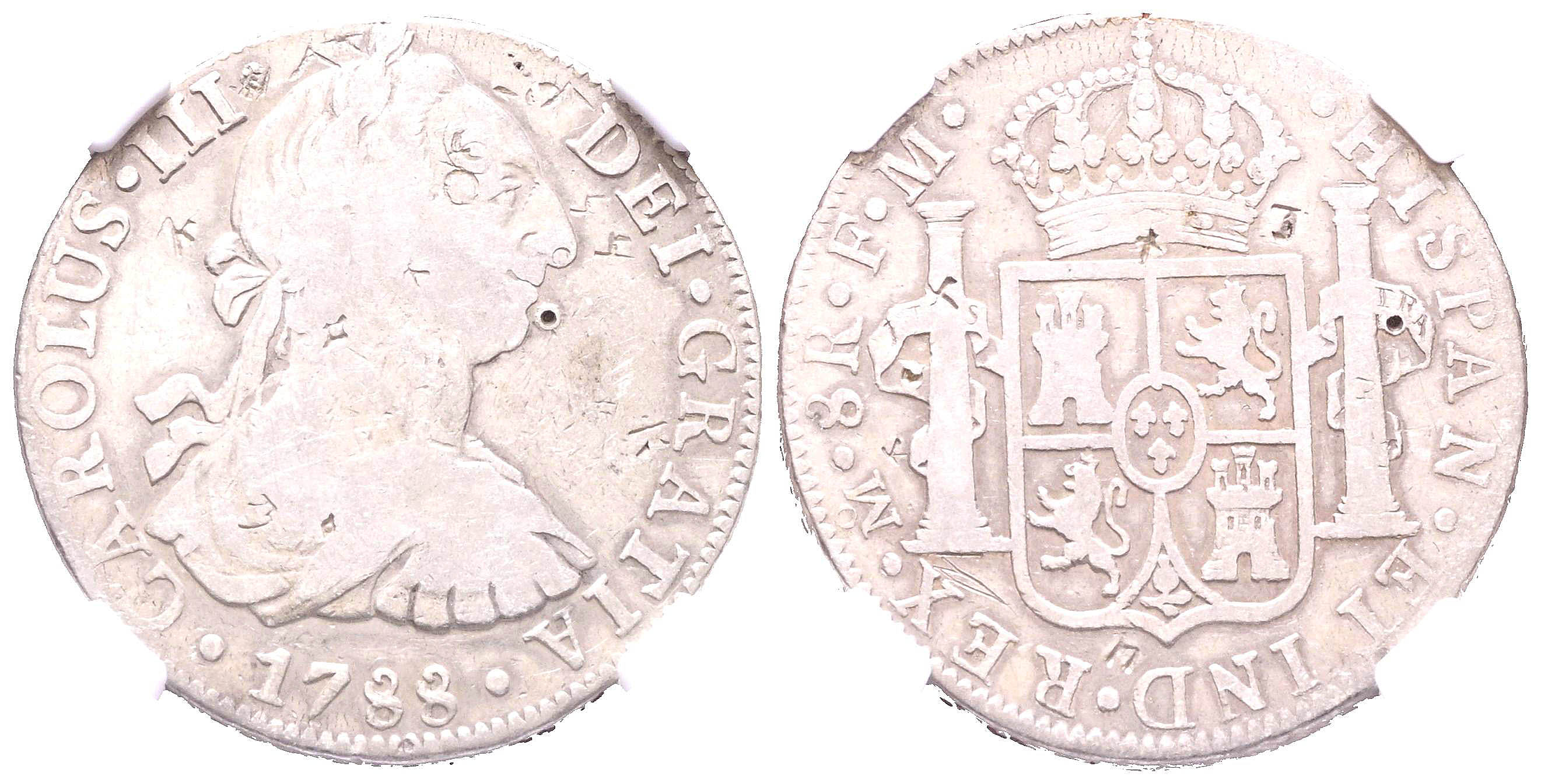 CARLOS III (1759-1788). 8 Reales. (Ar. 27,00g/38mm)*. 1788. Mexico FF. (Cal-2019-1132). Encapsulated by NGC Chopmarked. *Theoretical weight and measurements.