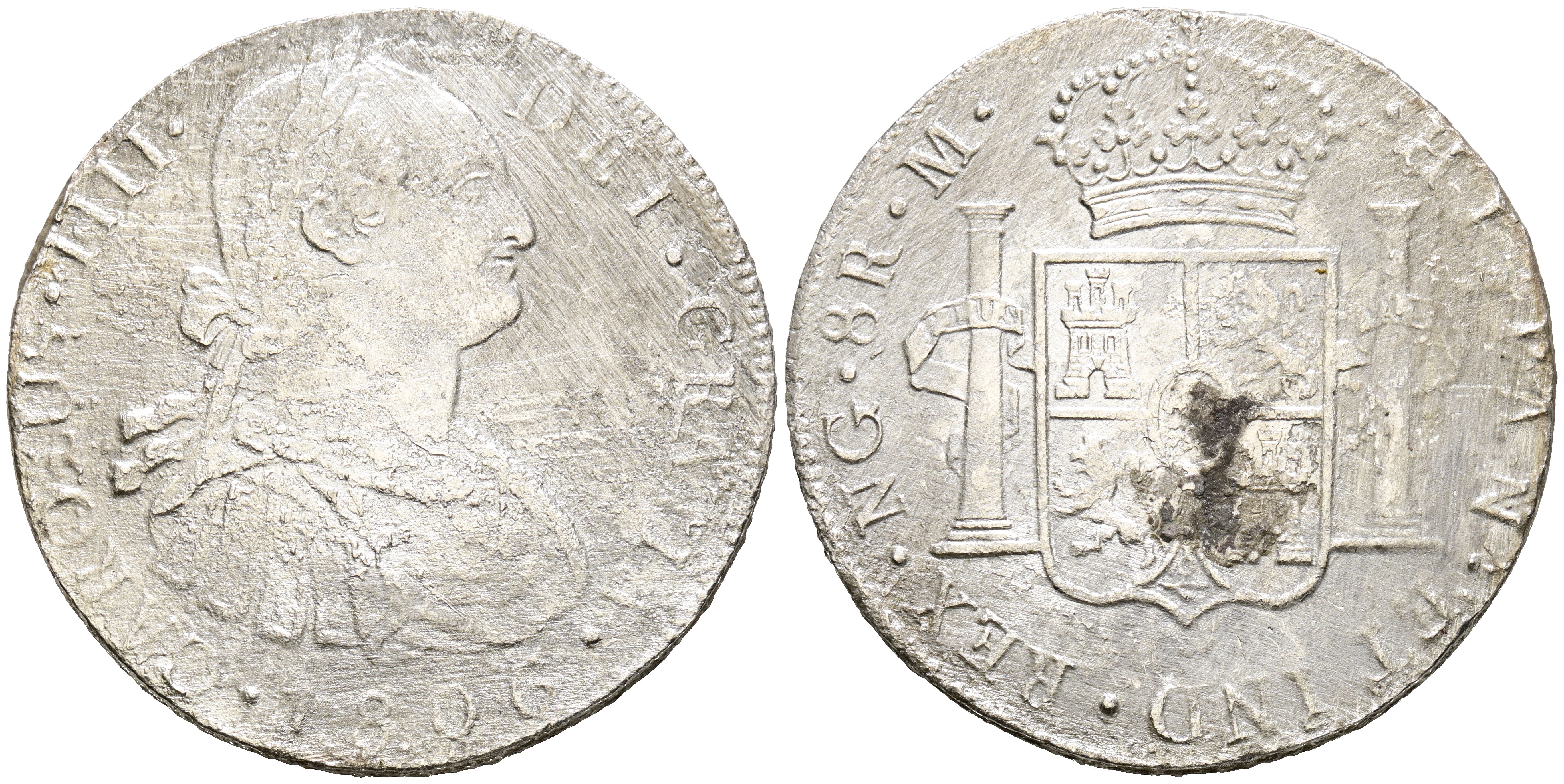 English CHARLES IV (1788-1808). 8 Reales. (Ar. 24.73g/39mm). 1806. Guatemala M. (Cal-2019-901). VF. Cleaned oxidations.