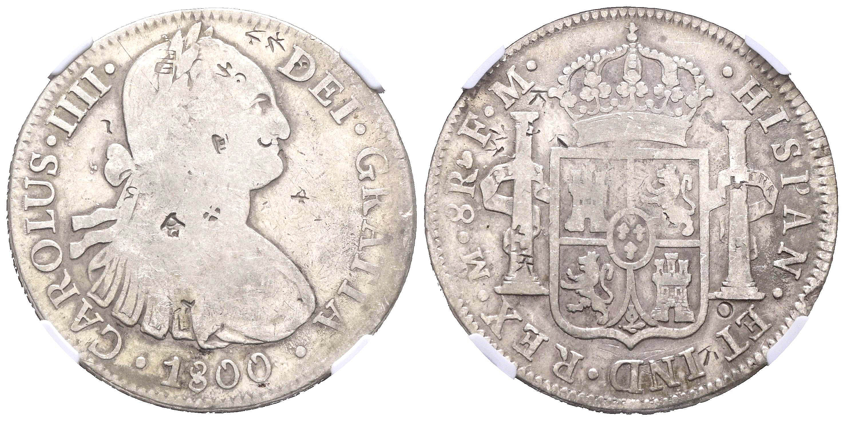 CARLOS IV (1788-1808). 8 Reales. (Ar. 27,00g/38mm)*. 1800. Mexico FM. (Cal-2019-965). Encapsulated by NGC Chopmarked. *Theoretical weight and measurements.