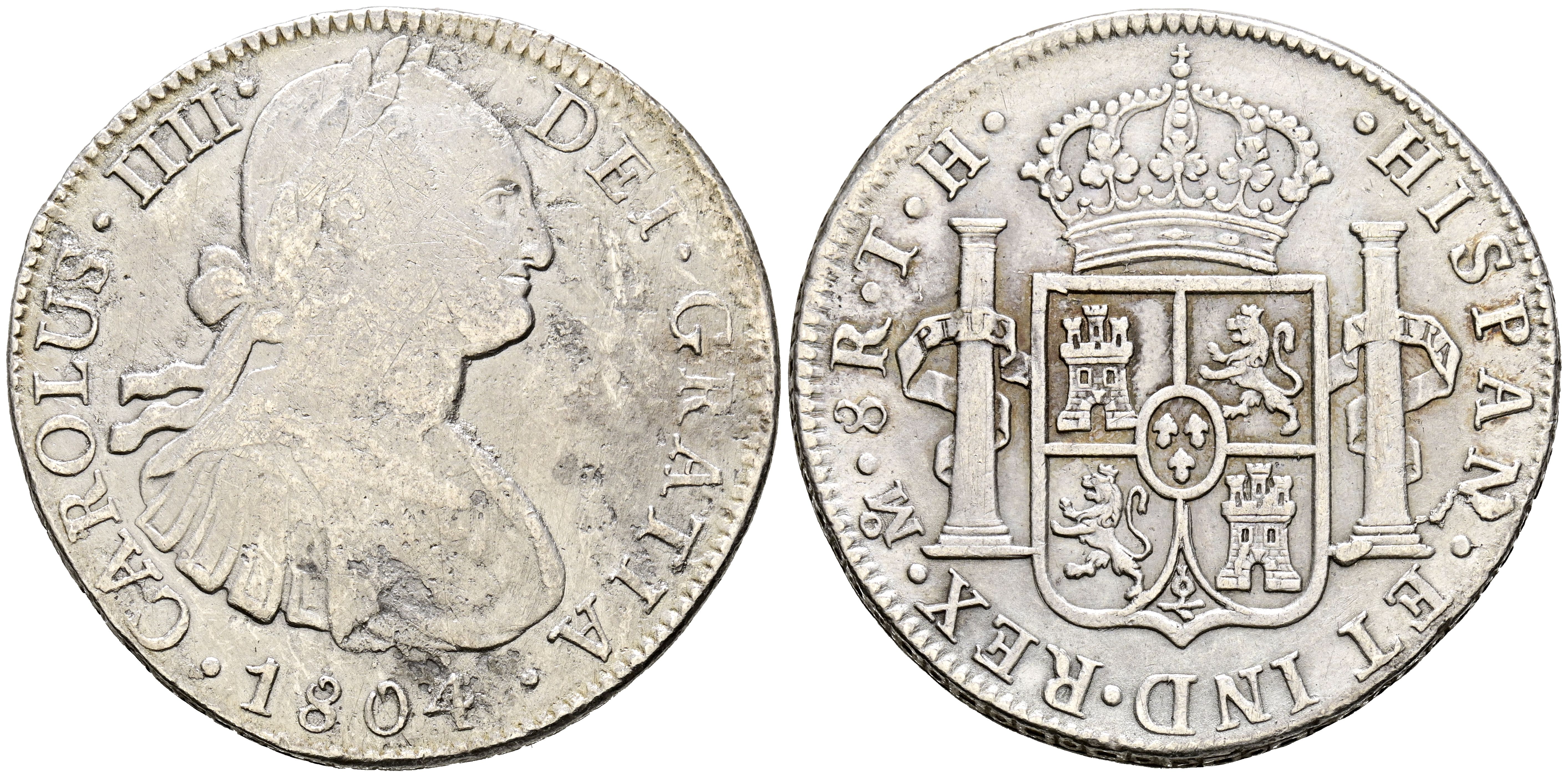 CHARLES IV (1788-1808). 8 Reales. (Ar. 26.51g/40mm). 1804. Mexico TH. (Cal-2019-980). Very Fine-/Very Fine.
