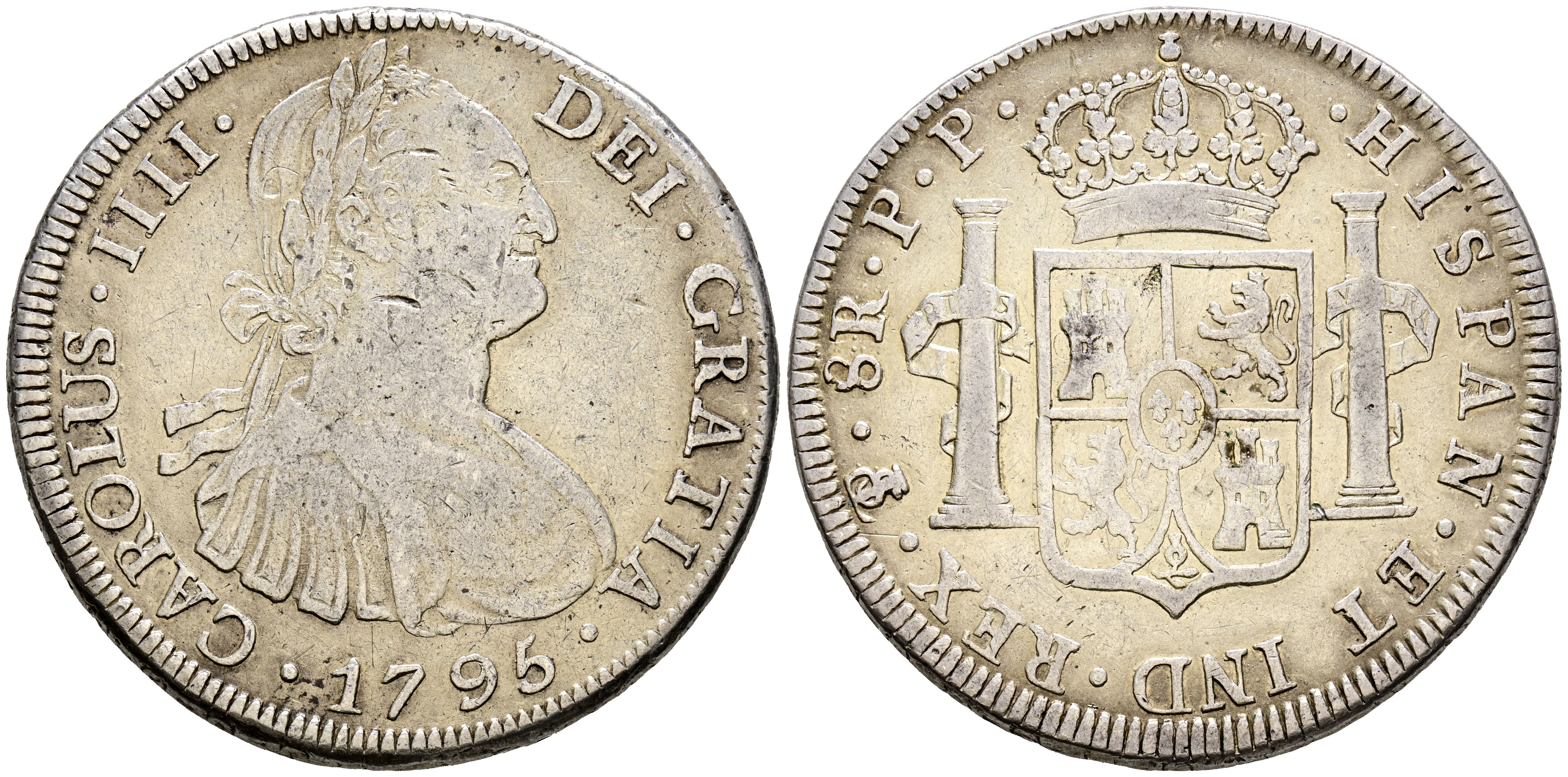 English CHARLES IV (1788-1808). 8 Reales. (Ar. 26.54g/41mm). 1795. Potosí PP. (Cal-2019-999). Very Fine.