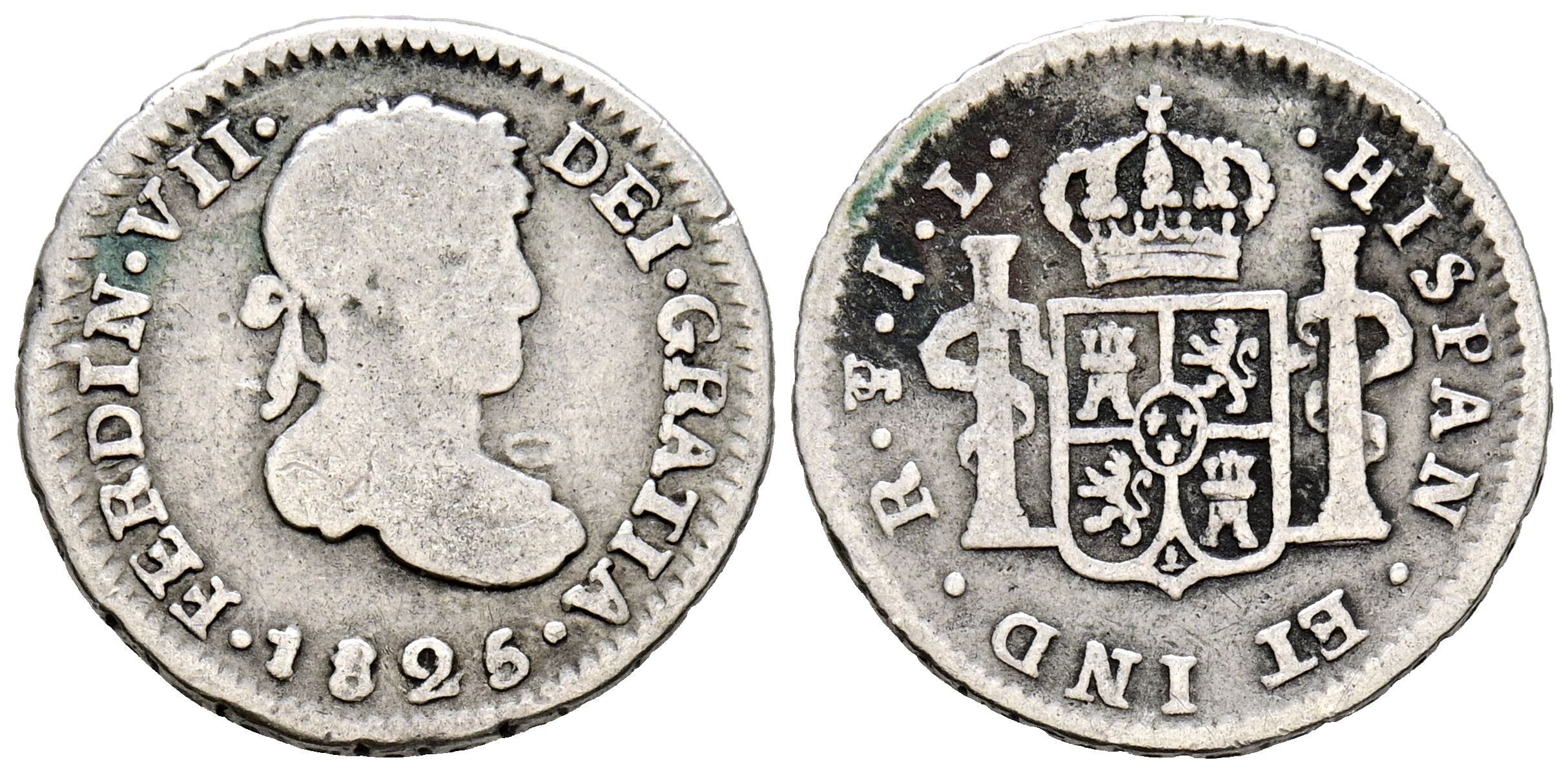 English FERNANDO VII (1808-1833). 1/2 Real. (Ar. 1,60g/17mm). 1825. Potosí JL. (Cal-2019-442). Republican coinage. VF-.