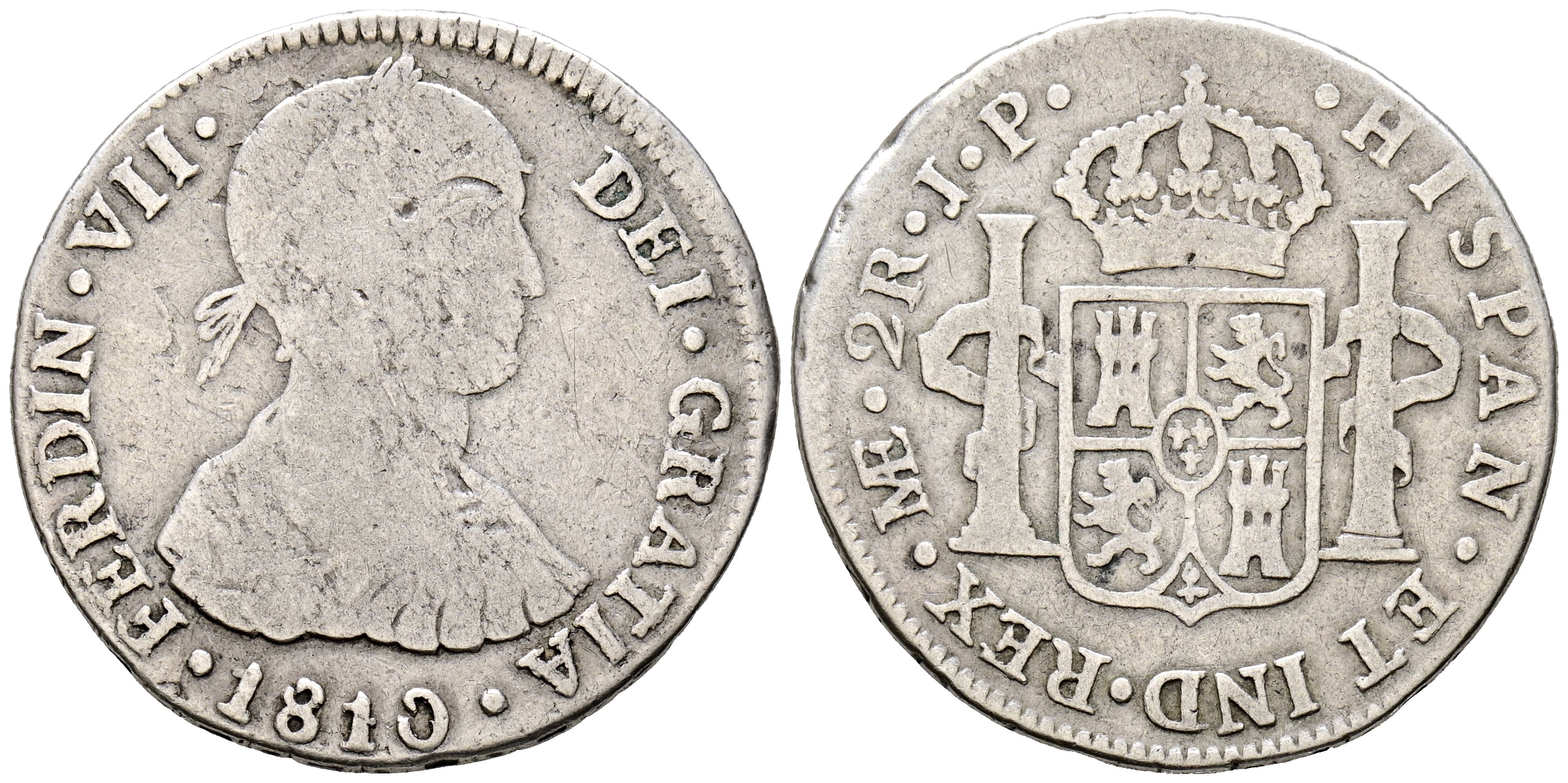 English FERDINAND VII (1808-1833). 2 Reales. (Ar. 6.45g/27mm). 1810. LimaJP. (Cal-2019-809). Very Fine-.