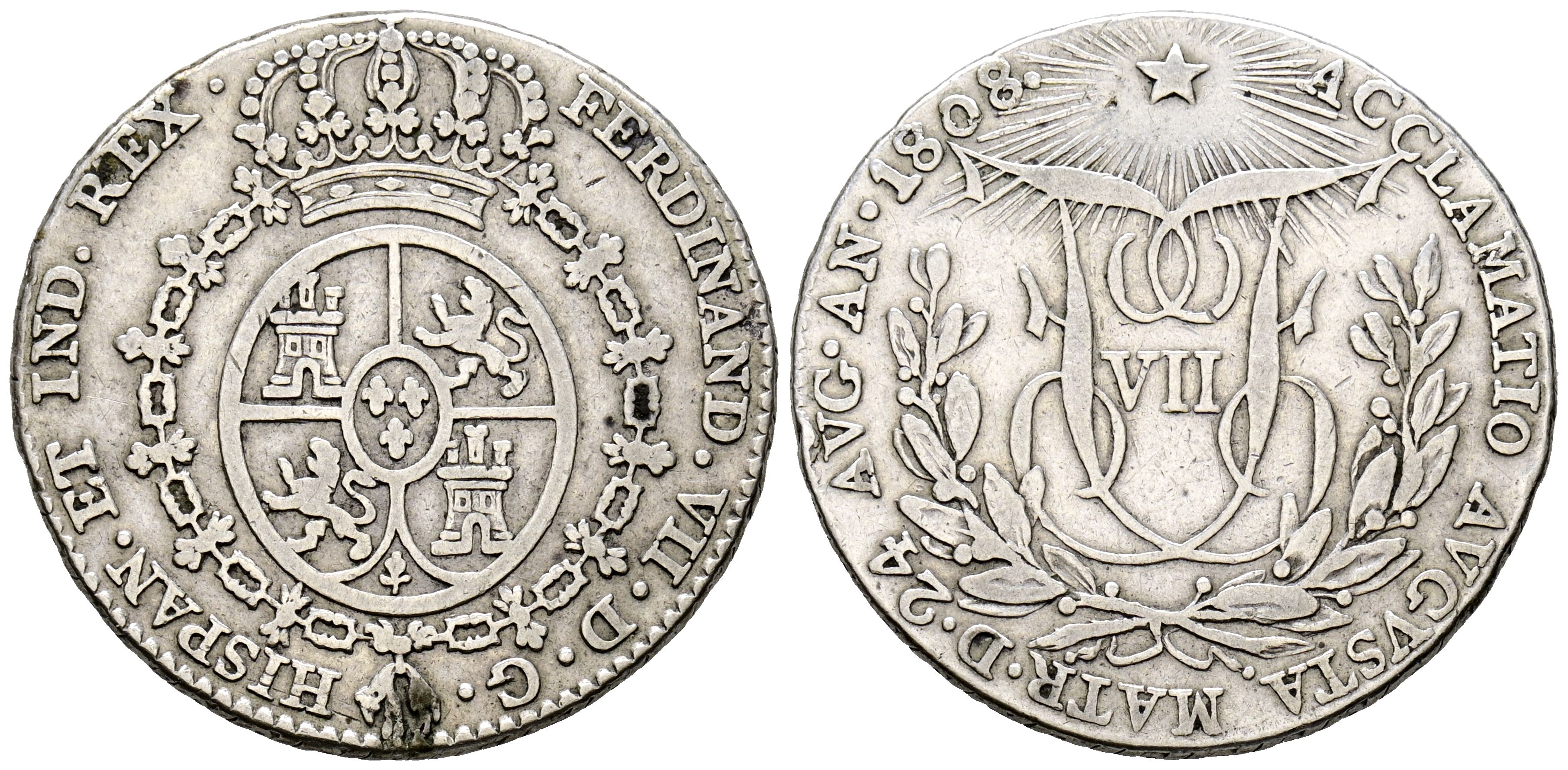 English FERNANDO VII (1808-1833). Proclamation in Madrid (Ar. 5,88g/25mm). 1808. Module of 2 Reales. (Ha. 2). VF.