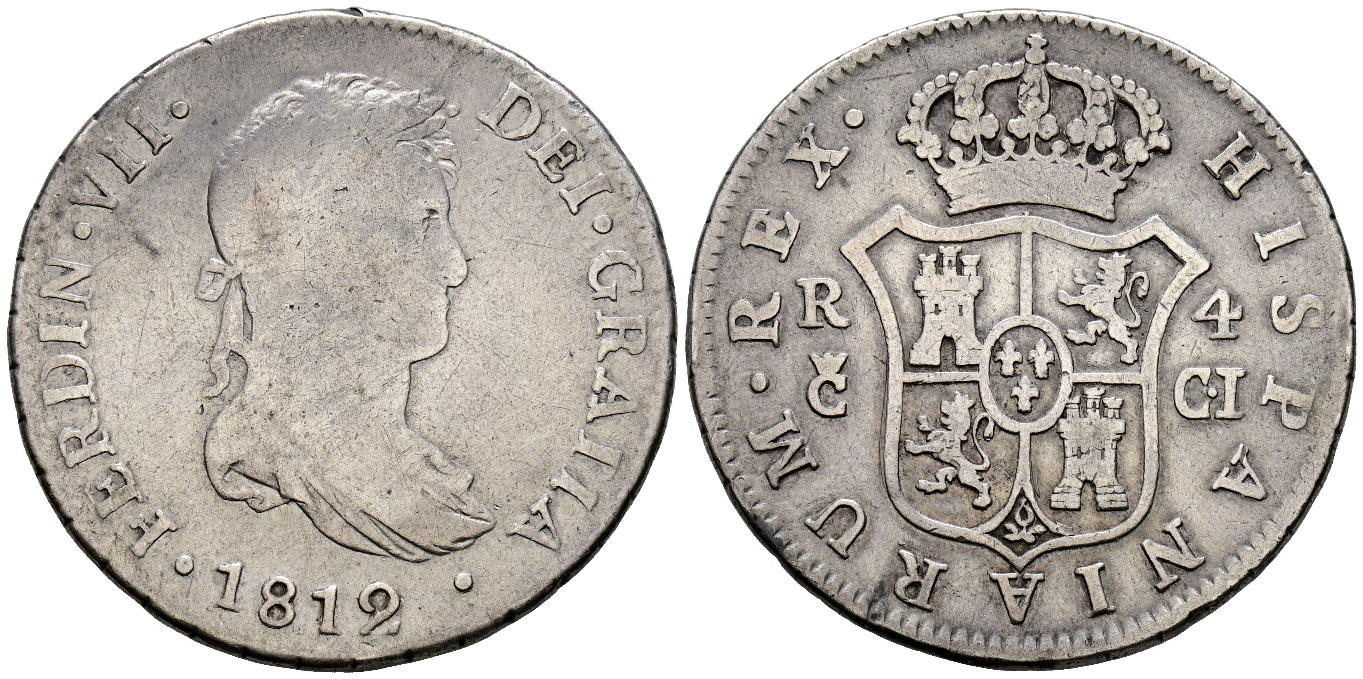 FERDINAND VII (1808-1833). 4 Reales. (Ar. 13.04g/33mm). 1812. Cádiz CI. (Cal-2019-1024). Very Fine-/Very Fine. Scarce.