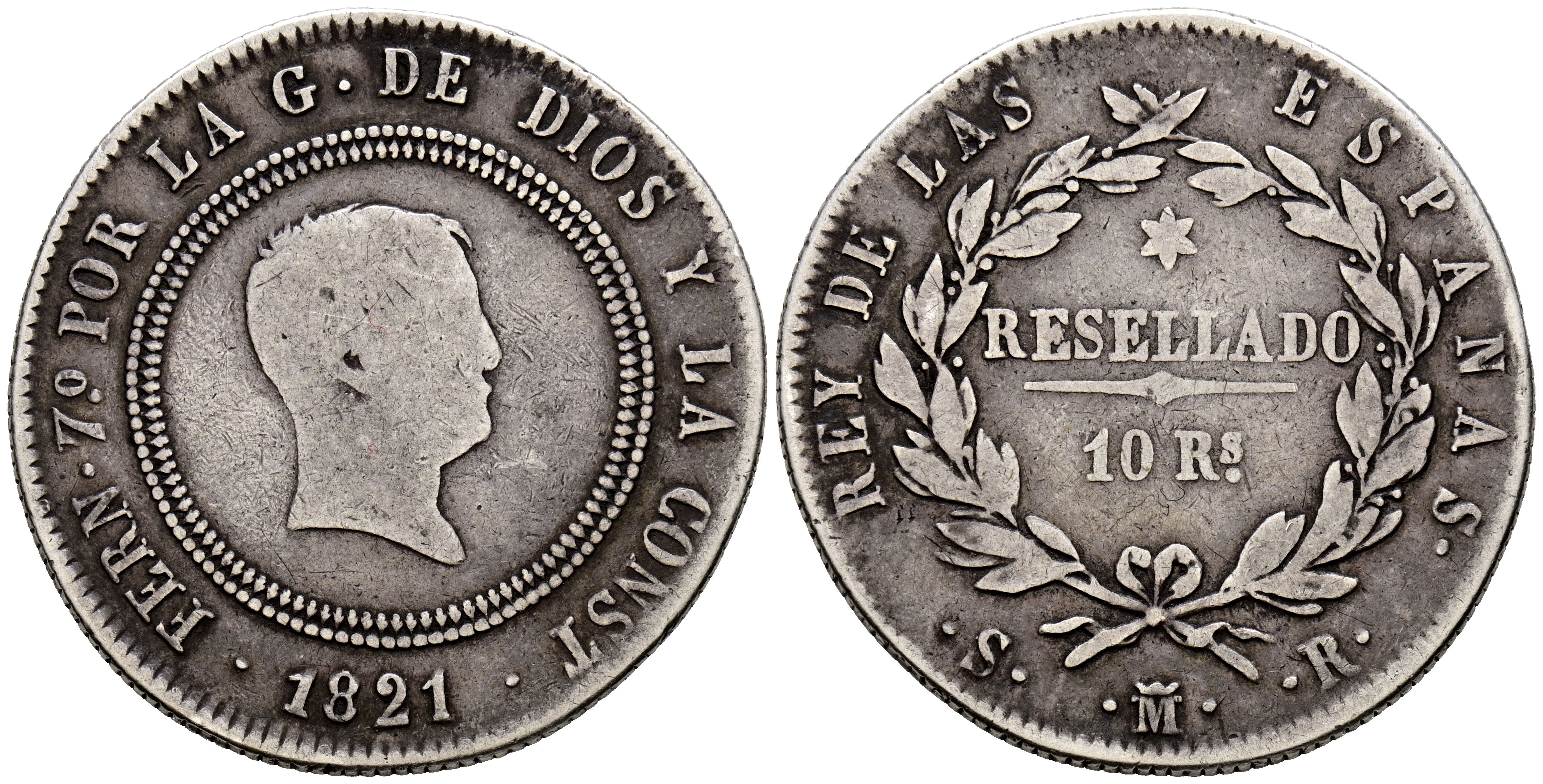 FERNANDO VII (1808-1833). 10 Reales. (Ar. 12,77g/33mm). 1821. Madrid SR. (Cal-2019-1088). VF-.