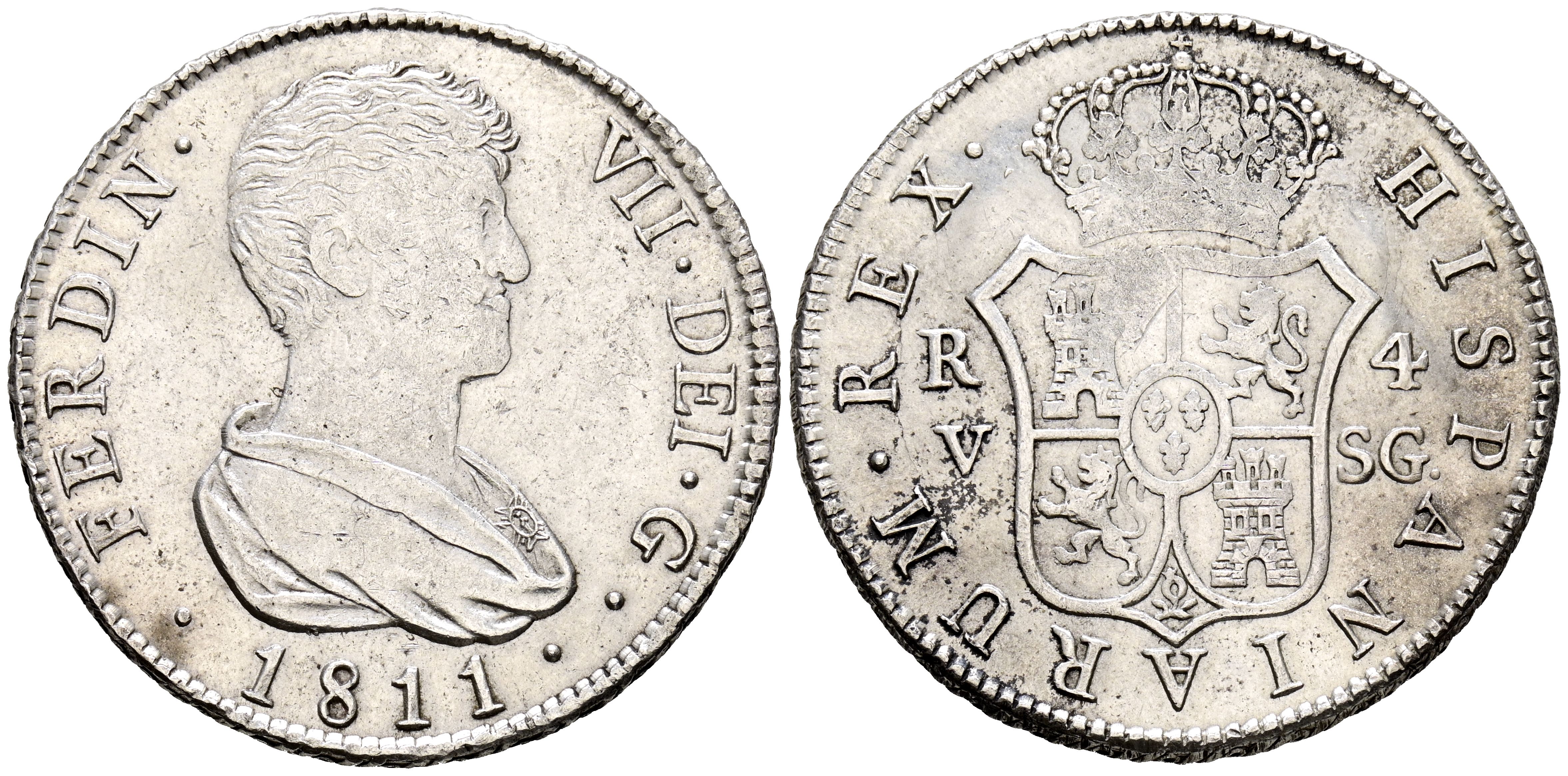 FERDINAND VII (1808-1833). 4 reales (Ar. 13.48g/33mm). 1811. Valencia SG. (Cal-2019-1144). Extremely Fine. Typical voids and impurities.