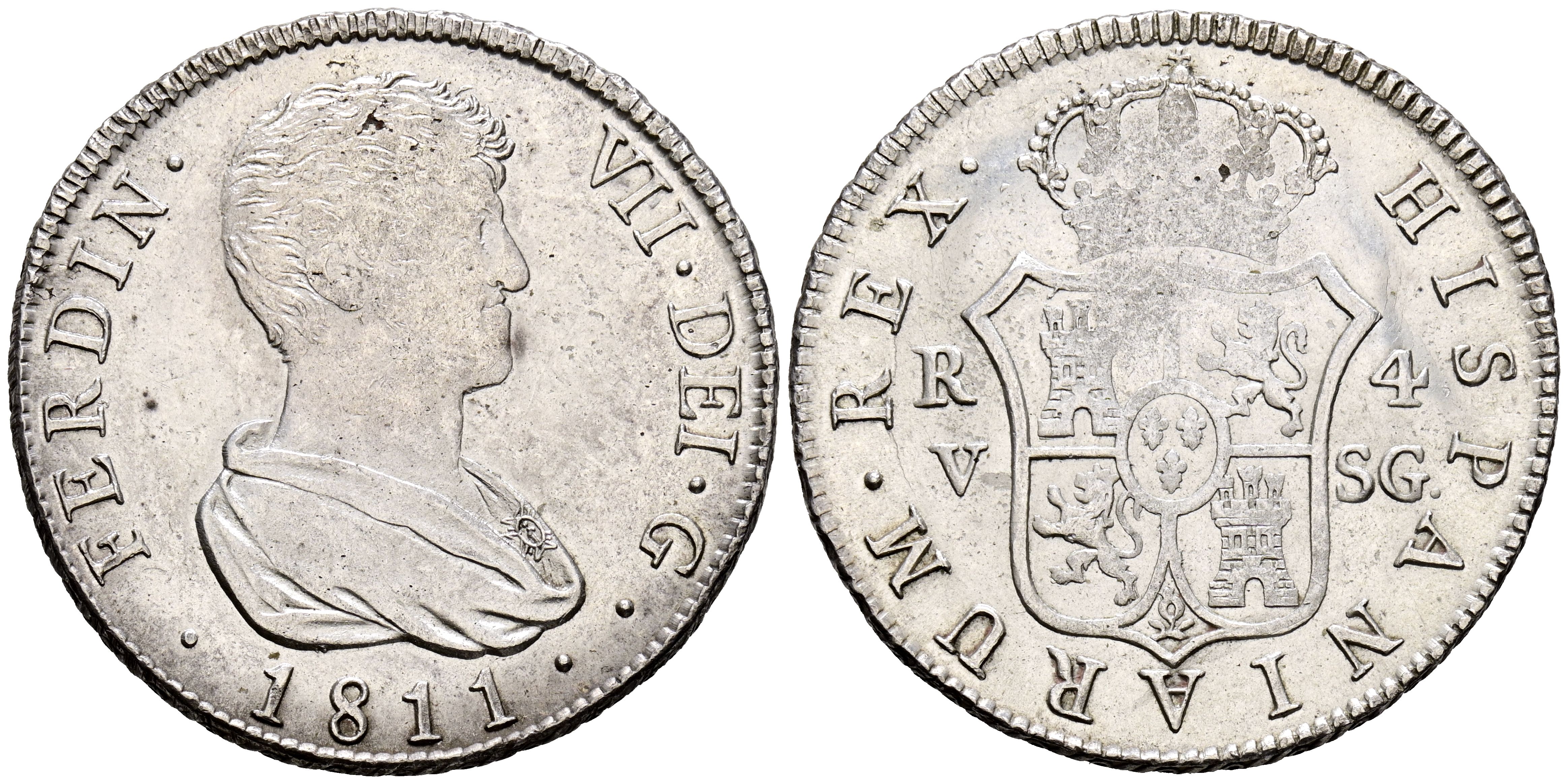 FERNANDO VII (1808-1833). 4 reales (Ar. 13,40g/33mm). 1811. Valencia SG. (Cal-2019-1144). Extremely Fine. Typical gaps and impurities.