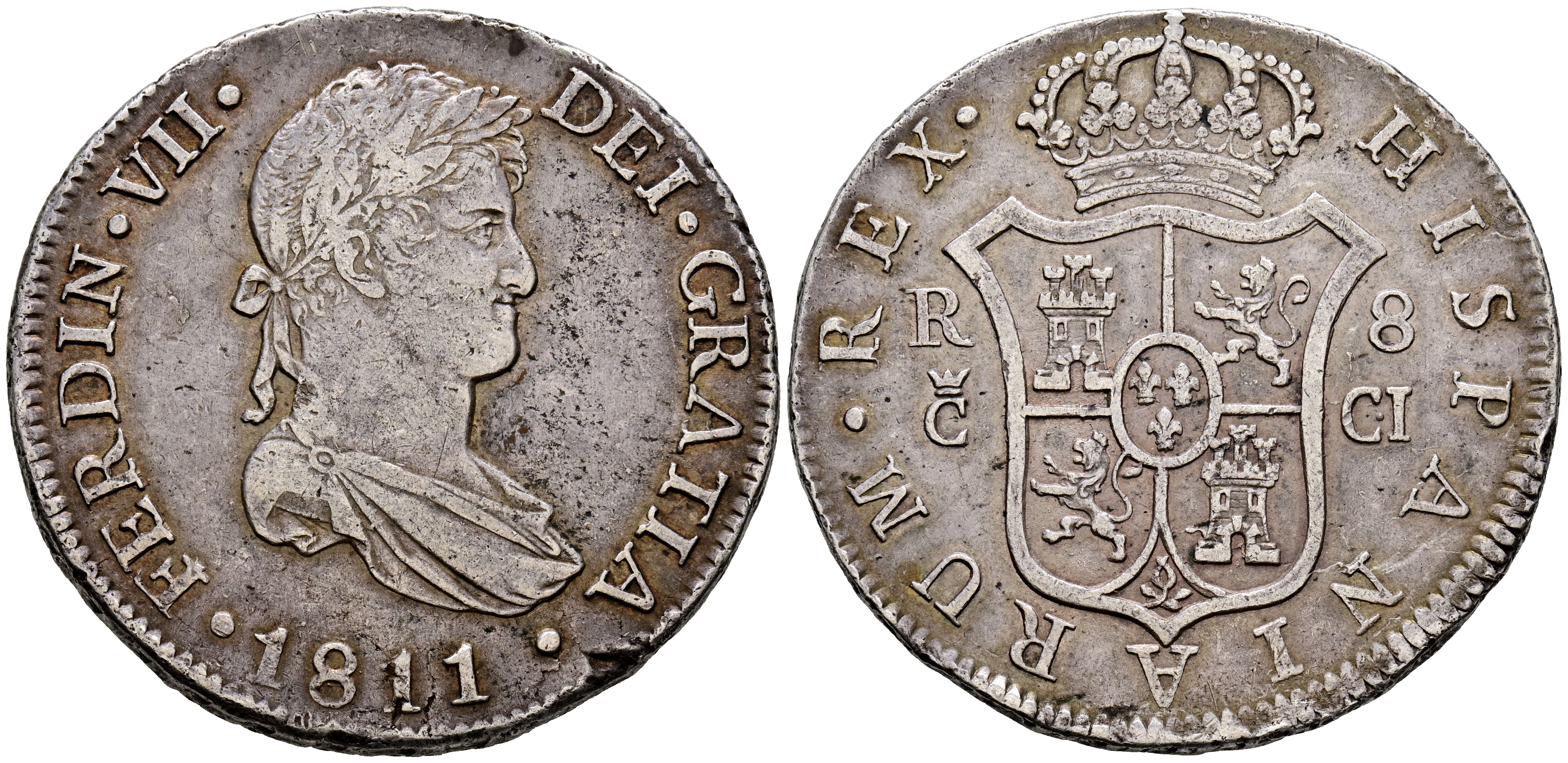 FERDINAND VII (1808-1833). 8 Reales. (Ar. 26.86g/41mm). 1811. Cádiz CI. (Cal-2019-1148). Very Fine. Nice patina.