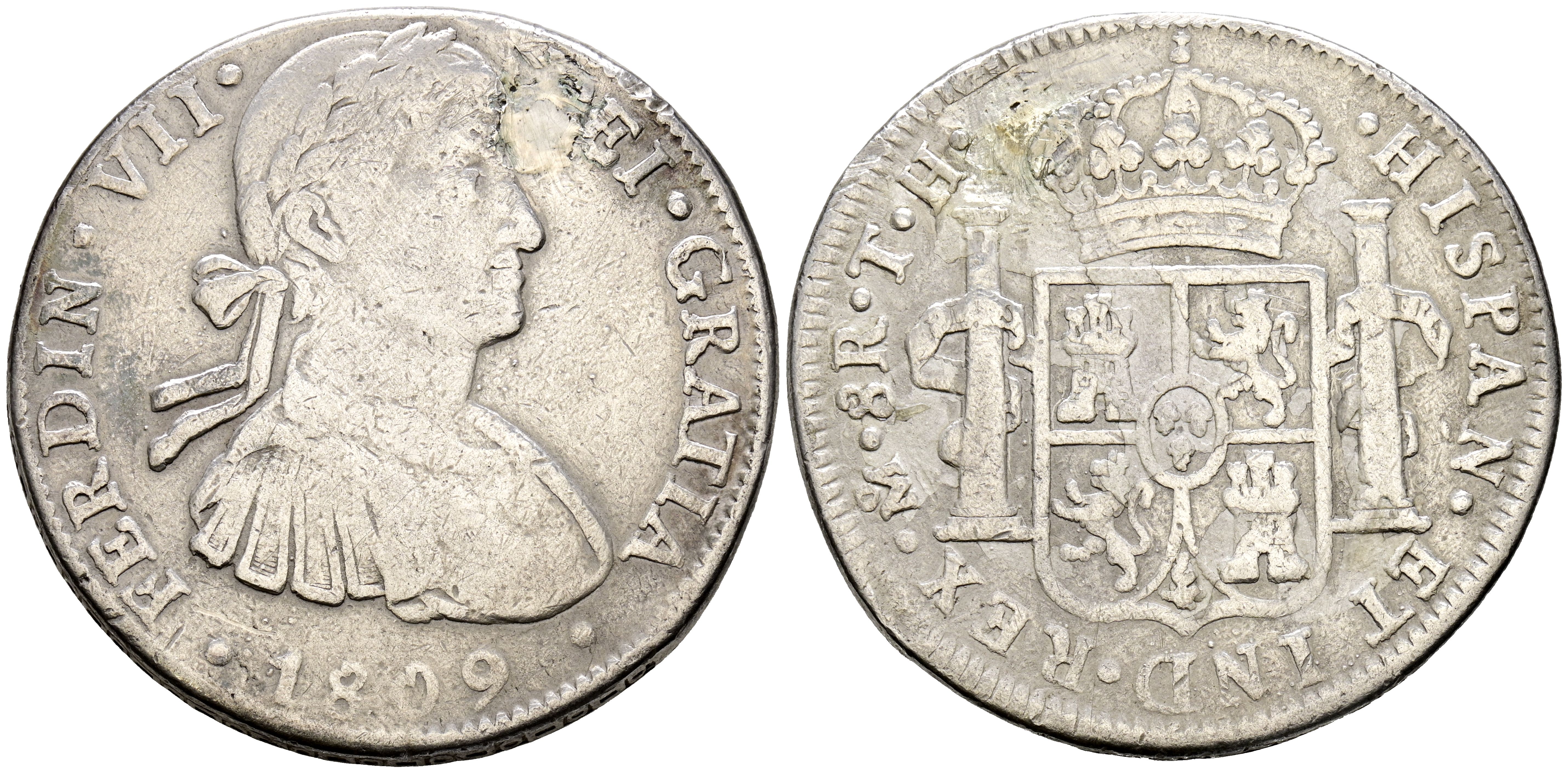 FERNANDO VII (1808-1833). 8 Reales. (Ar. 26,58g/39mm). 1809. Mexico TH. (Cal-2019-1308). Fine. Hole covered. Used as a jewel.