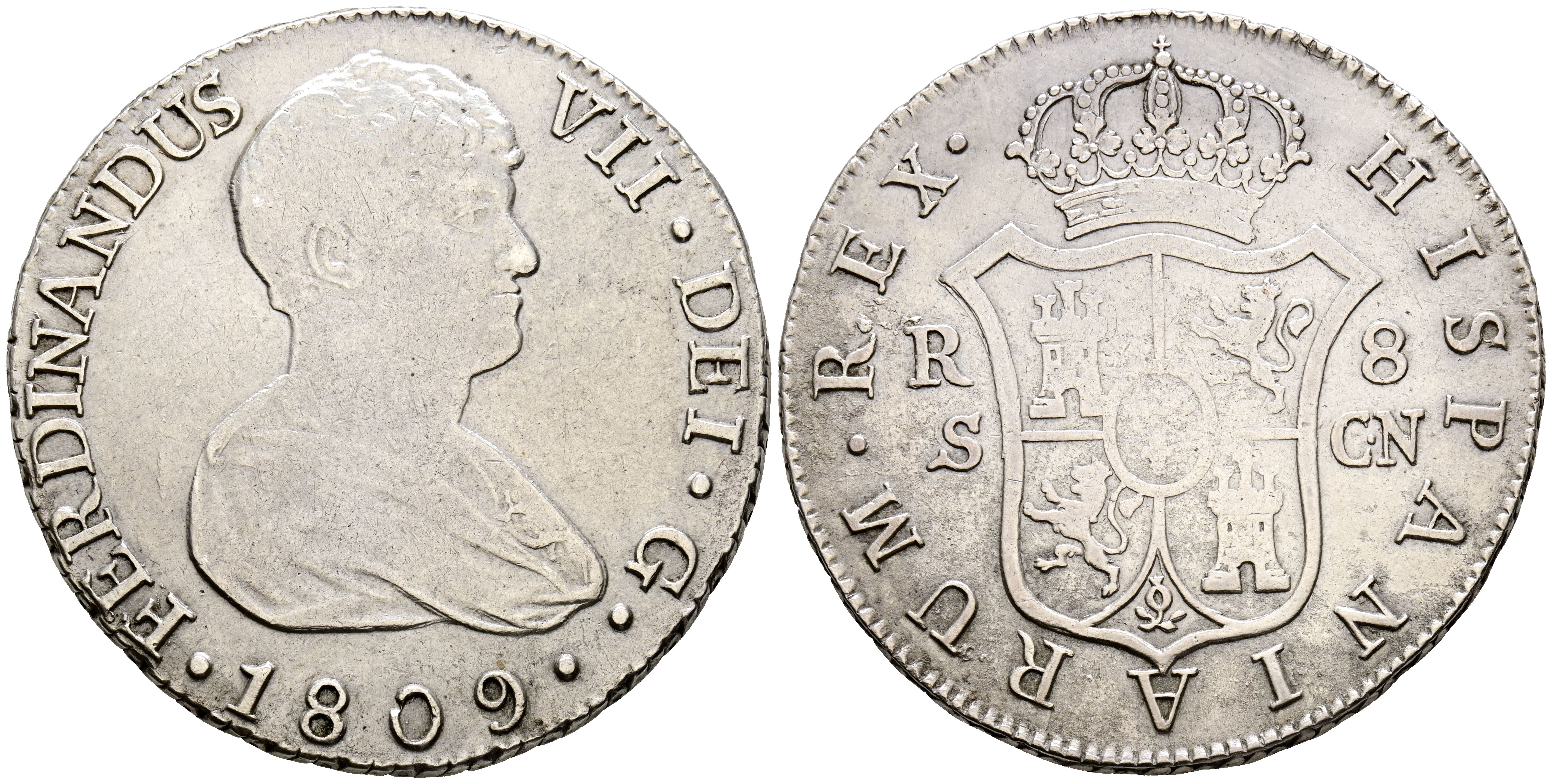 FERNANDO VII (1808-1833). 8 Reales (Ar. 26,85g /40mm). 1809. Seville, CN. Nude bust. (Cal-2019-1412). VF. Oxidations cleaned.
