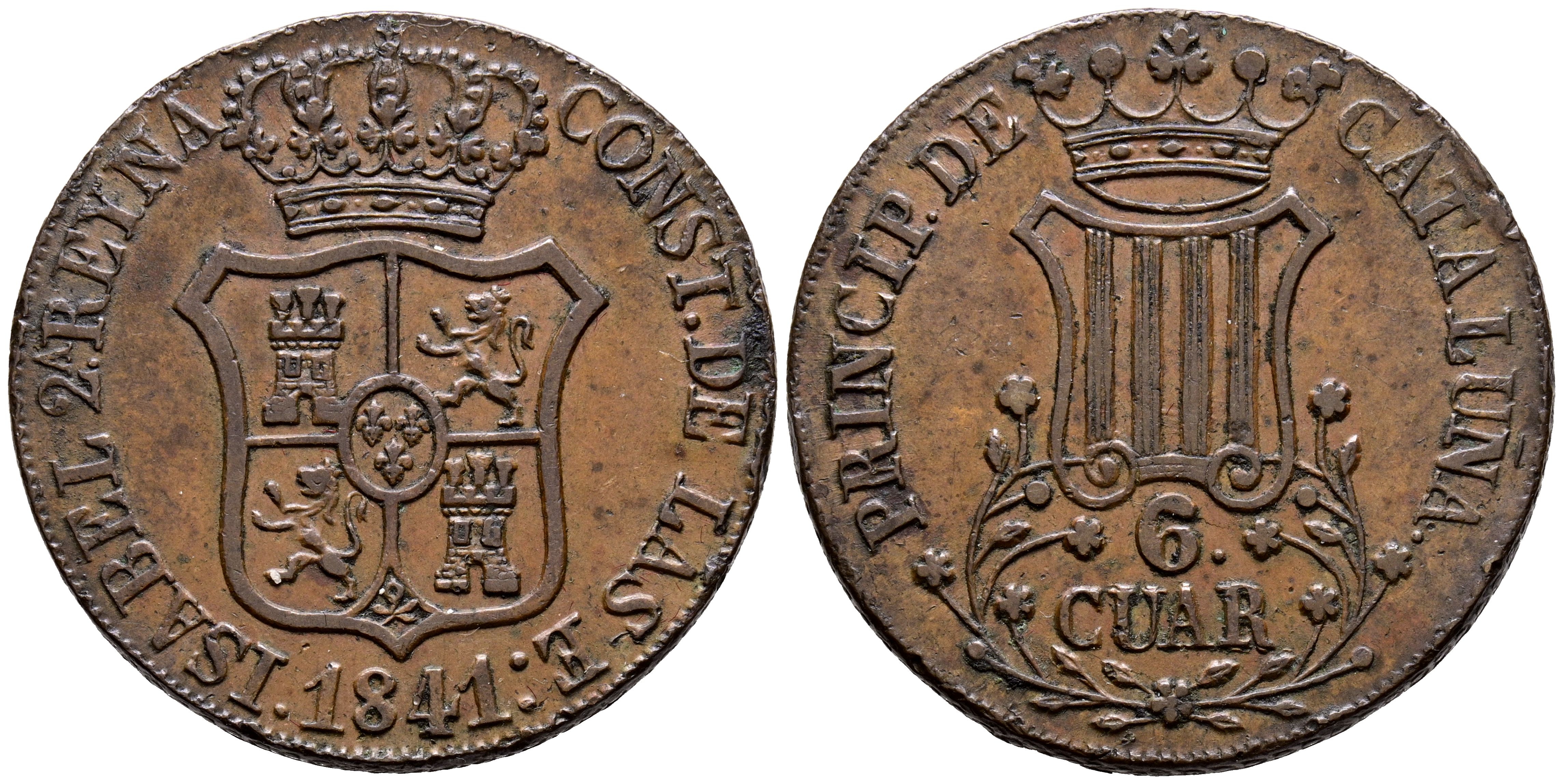 ELIZABETH II (1833-1868). 6 Rooms. (Ae. 13.37g/33mm). 1841. Barcelona. (Cal-2019-22). Very Fine.